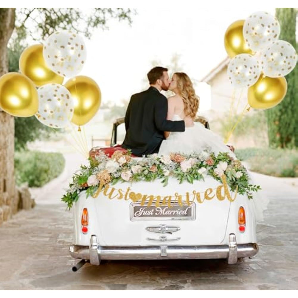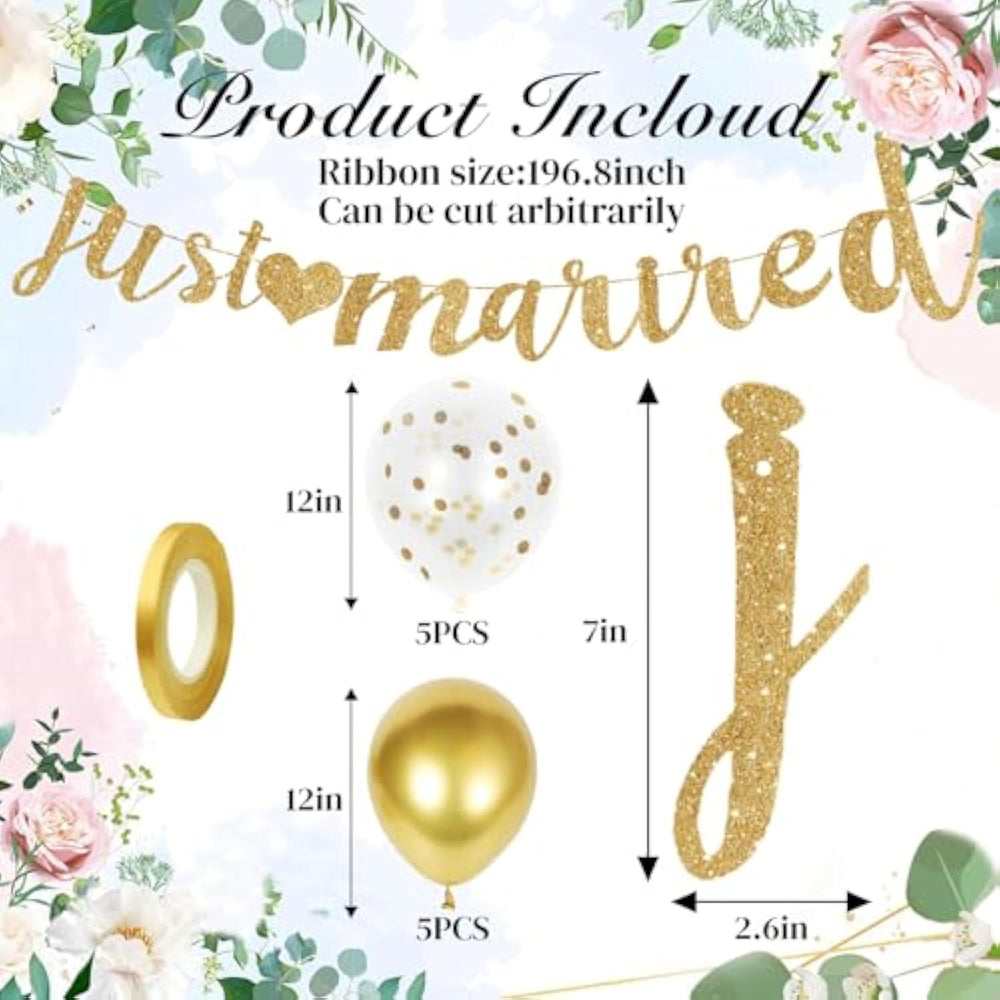 | Just Married Decorations: Just Married Banner Adds Glamorous Sparkle To All Your Wedding Decorations, Creating The Perfect Ambiance For Your Wedding Reception Decorations. This Versatile Just Married Sign Works Beautifully As Just Married Decorations, Just Married Car Decorations, Or Photo Booth Props Wedding - Transforming Any Space Into A Celebration! | | Diy Just Married Banner: Create Dream Decor With Ease! This Gorgeous Gold Just Married Banner Kit Includes All Materials For A Personalized Touch. Perfect For Creative Couples Who Want Elegant Just Married Decorations - Simply Assemble And Customize Your Just Married Sign To Hang Anywhere! | | Premium Wedding Party Decorations: Crafted From Heavy-Duty 350Gsm Cardstock, Our Just Married Banner Is Thicker And Sturdier Than Standard Decorations. These Wedding Decorations For Reception Are Built To Last, So You Can Reuse Them For Anniversaries Or Gift Them To Future Newlyweds! | | Customizable Just Married Sign: Adjust The Spacing Between Letters On Your Wedding Banner To Perfectly Fit Your Space. The Innovative Hole-Punch Design Keeps Each Element Securely In Place, Making These Just Married Car Decorations Or Wall Hangings Effortless To Arrange Exactly How You Want. | | Wedding Decor Set: Just Married Decorations Kit Includes A Just Married Banner Letters Spelling "Just Married", 5 Gold Balloons And 5 White With Gold Confetti Balloons, Along With 1 Ribbon (196.8 Inches). Each Balloon Comes With A Leather Band To Hold It In Place. The Coordinating Balloons Create Perfect Wedding Party Decorations. If You'Re Not Completely Thrilled With Your Decor, Our