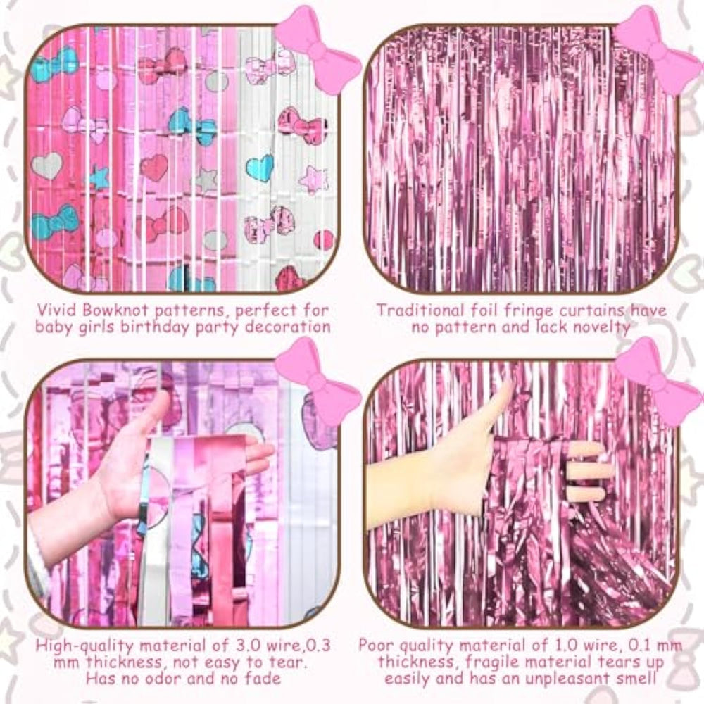 | ?? ?Kawaii Birthday Decorations?: This Package Includes Two Packs Of Bow-Patterned Tinsel Foil Fringe Curtains, Each Measuring An Extra Large 3.3 X 6.6 Ft (Width X Drop), Ideal For Cartoon Cat-Themed Birthday Party Photo Backdrops. | | ?? ?High Quality Fringe Curtains?: These Cartoon Cat Themed Party Supplies Are Made From Durable, Lightweight Tinsel. Our Premium Fringe Curtains Are Sturdy, Unbreakable, And Designed For Long Lasting Use. | | ?? ?Easy To Apply?: Remove The Double-Sided Adhesive Tape And Attach The Fringe Curtain To Your Desired Location. Perfect For Doorways, Windows, Walls, Living Rooms, Dessert Table Backdrops, And Stage Decorations. | | ?? ?Cartoon Cat Theme Party Supplies?: Our Unique Tinsel Foil Fringe Curtains Make The Perfect Photo Backdrop For Any Girl'S Party Or Room Decor. They’Ll Create A Vibrant, Colorful Atmosphere That Will Amaze Your Guests. | | ?? ? Widely Applications ?: These Kawaii Bow Birthday Foil Fringe Curtains Backdrops Are Perfect For A Live Streamer Backdrop, Broadcast Streamer Backdrop, Dessert Table Backdrop, Stage Backdrop, Disco Backdrop, Bar Backdrop, Office Backdrop Decoration, Home Decoration, Etc. | |
