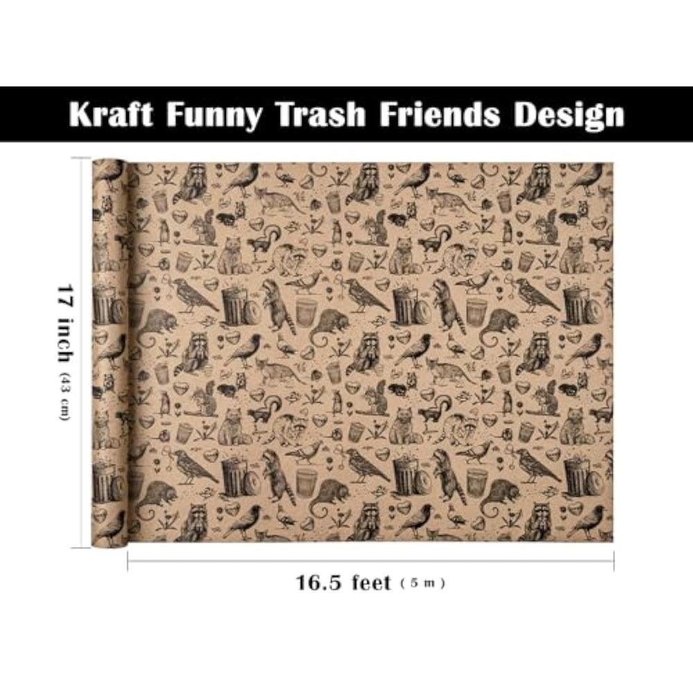 Perfect Size: Each Roll Measures 17 Inch Wide X 16.5 Feet Long. Providing You With A Total Of 23.25 Square Feet Of Paper, Perfect For Any Small Or Medium Sized Gift. | Funny Design: Kraft Funny Trash Friends Design, Vintage Opossum Rat Crow Cat Skunk And Mouse Print, Creates A Rustic And Natural Atmosphere. The Simple Colors And Interesting Pattern Will Make Your Gift Stand Out. | Premium Quality: Created With High-Quality Paper Materials, Thick And Not Easily Tear Or Rip. Item Came With Shrink Film To Prevent Wrapping Paper From Scratches And Reduce Dust. | Use All Occasion: Perfect For Friends Birthday, Wedding, Bridal Shower, Engagement Party, Holiday And Other Special Occasions Gifts Wrap. It Can Also Be Used For Diy Craft Projects And Other Artistic Inspirations. | Quality