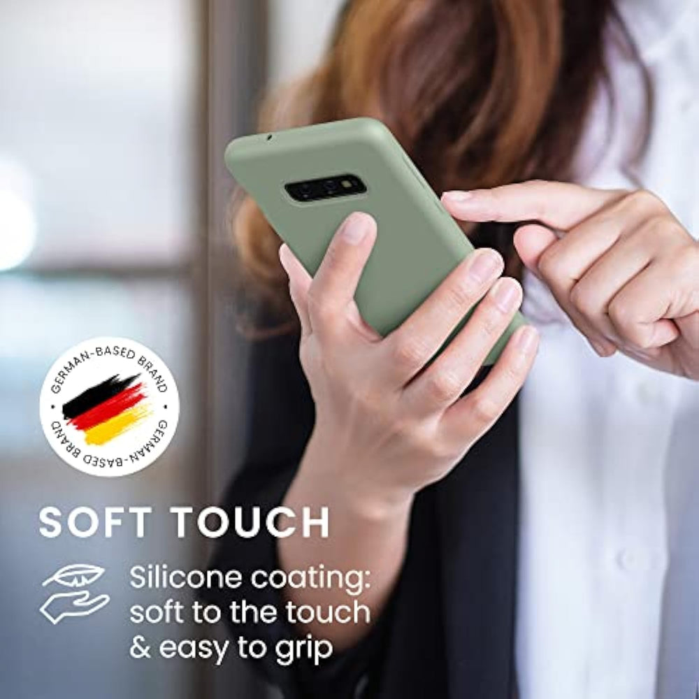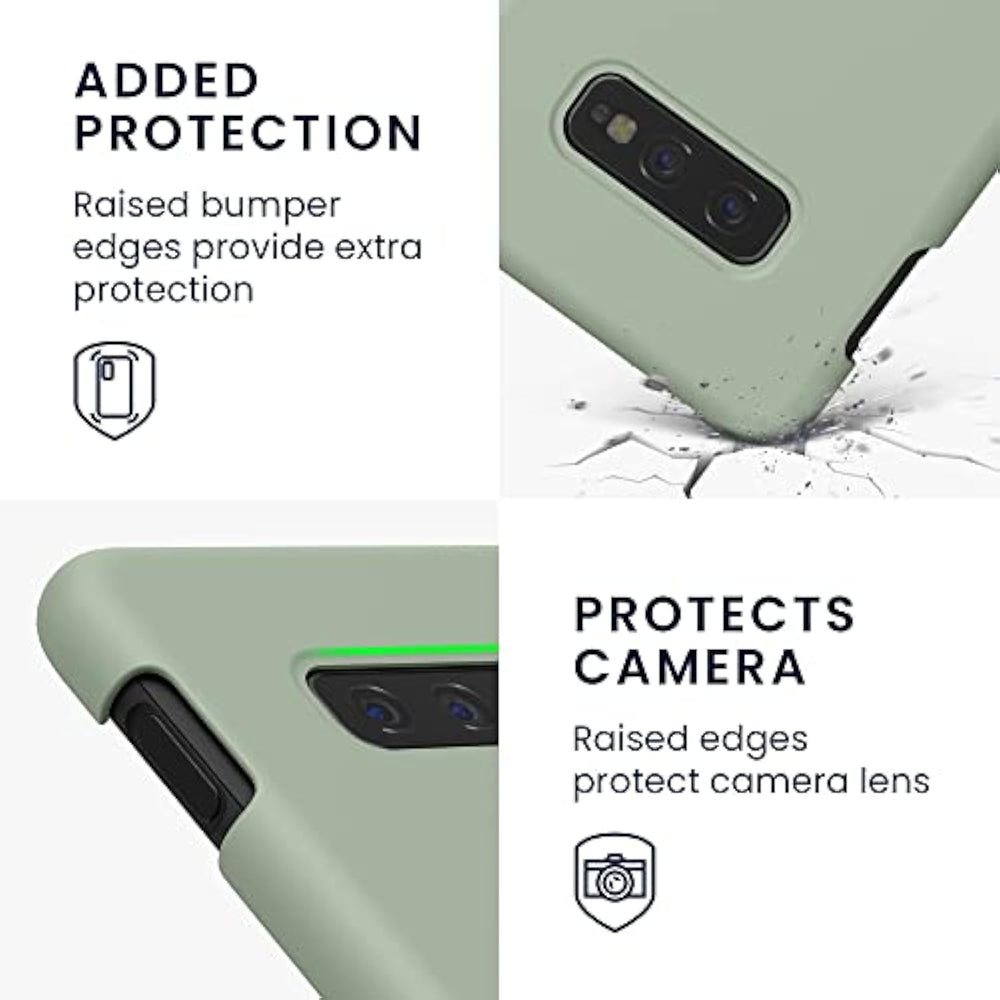 | COMPATIBILITY: Compatible with Samsung Galaxy S10e | | NON-SLIP: Coated TPU silicone finish provides a soft, comfortable grip and fingerprints are easily wiped away | | DURABLE: Silicone rubber coating cushions and protects against shocks, falls, drops, scratches and bumps | | EASY ACCESS: Precise cutouts on phone cover enable easy access to all buttons, ports and camera | | GREAT COLOR: Express yourself and personalize the look of your phone with a case in gray green | |