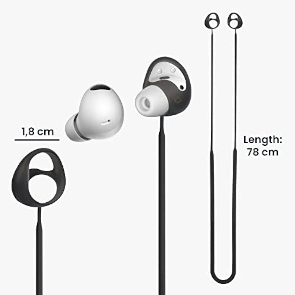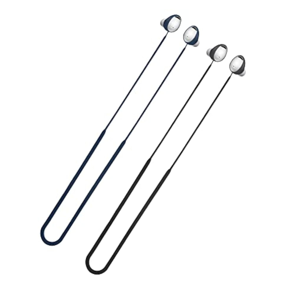 | COMPATIBILITY: Compatible with Samsung Galaxy Buds2 Pro | | SILICONE MATERIAL: The elastic silicone cord is comfortable to wear and keeps a good grip on loose ear buds | | AROUND YOUR NECK: This flexible silicone straps keep you from accidentally losing your Bluetooth headphones | | SPORT OR EVERYDAY: Use the headphone holder when working out, running, biking or commuting to work or school | | STYLISH AND PRACTICAL: Keep your wireless headphones safe and look good too with these long connector straps | |