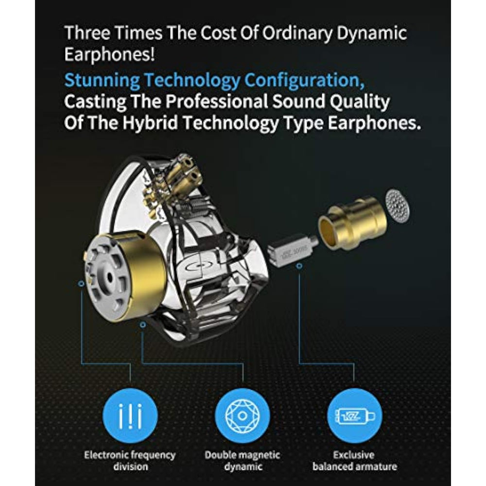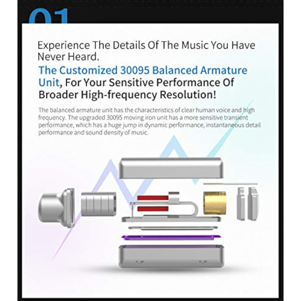 | High Resolution – The Earphone Enables Us To Hear The Subtlety Of The Sound. And The Acoustic Adjustment Makes The Advantage Of Dd And Ba To Achieve Balanced, Clean And Detailed Sound Quality. | | Eye-Catching Look - The Precision Metal Craftsmanship Combined With The Bright Colors Of Resin Make The Overall Appearance Fashion. It Is Not Only A Pairs Of In Ear Headphones, But Looks Like An Art. | | Patented Dynamic Driver - The Four-Layer Voice Coil Brings A Stronger Driver, The Low Frequency Is Powerful, The Soundstage Width Is Extended, And The Listening Experience Is Moving. | | Improved Detachable Connection – The Groove Protection Design Protects The Earbuds' Pins From Distortion And Prolongs The . | | Audiphile Cable – This Durable Wire Makes The Sound Transmit Smoothly And Loseless. The Bronze Cord Matchs The Black In Ear Monitor, The Golden Cord Matches The Silver In Ear Headphone. | |