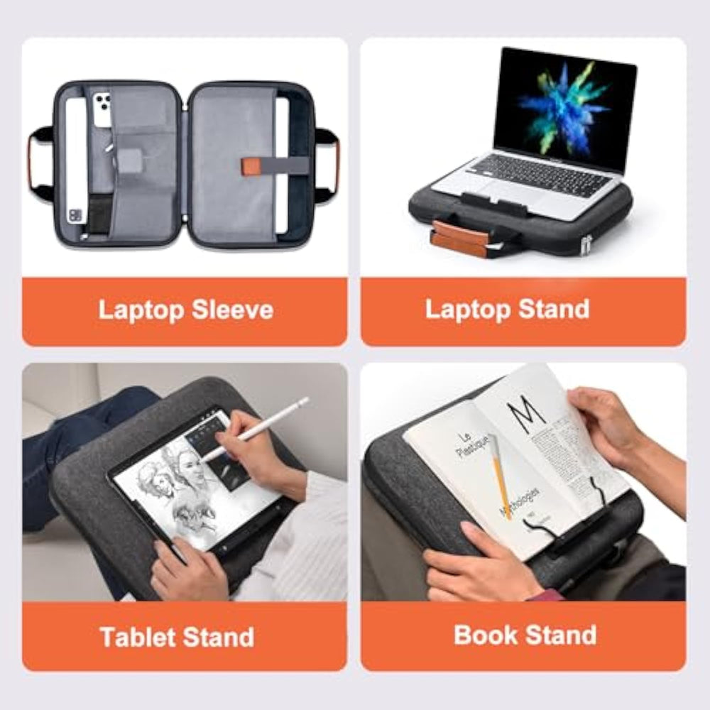 | 2 In 1 Laptop Bag Lap Desk: It Not Only Can Be A Hard Protective Bag For Your Almost 14 Inches And Under Laptop Or Tablet; But Also It Can Be A Lap Desk Or Reading Stand As It Has Stopper And Book Clip.Versatile Design Makes It Perfect For Work Or Study On The Go, While Providing Ample Space For Your Laptop And Other Office Supplies | | Large Capacity: The Laptop Case Hard Shell Has Large Storage Space.Outer Shell Sizer Is 29 * 37 Cm , Inner Size Is 26 * 35 Cm; This Laptop Hard Case Sleeve Is Compatible With Most Popular Almost 14" And Under Laptops; It Has A Main Laptop Compartment, A Larger And Three Smaller Mesh Compartments, Which Keeps Your Laptop, Tablet, Cables, Keyboard, Mobile Phones, Laptop Accessories Or Book Well-Organized | | Portable Design: Lightweight And Portable, This Laptop Bag Is Ideal For On-The-Go Professionals And Students; The Bag'S Compact Size And Lightweight Construction Make It An Ideal Travel Companion, Ensuring That You Can Carry Your Essentials Without The Bulk; Whether You'Re Working On A Project, Studying, Or Enjoying Some Leisure Time, This Bag Has Got You Covered | | Durable Material: Crafted From High-Quality And Durable Materials, This Computer Bag Ensures Durability And Protection; This Laptop Bag Can Withstand Daily Wear And Tear, Providing Long-Lasting Performance And Protecting Your Devices; This Laptop Carrying Case Features Furry Padded Compartments To Secure Your Device From Scratches And Shocks, Ensuring Your Laptop Stays Safe During Commutes Or Travel | | Sleek And Stylish: Designed For Both Women And Men, This Laptop Tote Bag Combines Functionality With Modern Aesthetic, Making It Suitable For Any Professional Or Casual Setting; Both For Work And Study, Both For Office Worker And Students; The Bag'S Unisex Design Makes It A Versatile Choice For Anyone Looking For A Reliable Storage Companion | |