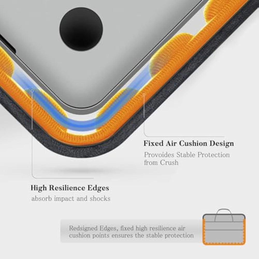 | ?Compatibility?: Compatible With Macbook Pro 14, Macbook Air 13.6 Inch, Macbook Pro 13 Inch, Compatible With Surface Book 3/2/1 13.5, Compatible With Surface Laptop 4/3/2/1 13.5; Compatible With Dell Latitude 14; Compatible With Hp Elitebook 13.3/Spectre X360 13.3/Envy 13/Stream 13/Stream 14/Pavilion 14; Compatible With Lenovo Ideapad 13/14. | | ?Enhanced Air Cushion Borders?: The Unique Air Cushion Borders Adeptly Absorb Impact From Falls, Whether Originating From The Bottom, Left, Or Right Sides. This Effectively Shields The Laptop'S Edges And Screen From Potential Damage. Furthermore, The Laptop Sleeve Bag Is Fortified With Reinforced Elastic Upper Edges, Delivering Comprehensive Vertical Protection For Your Device. | | ?Quadruple-Layer Shock Absorption Shield?: This Protective Laptop Bag Boasts A Four-Layer Horizontal Defense System, Proficiently Minimizing The Repercussions Of Collisions: 1. The Outermost Layer Is Composed Of Waterproof And Scratch-Resistant Fabric; 2. Elastic Eva Padding Ensures A Sleek And Streamlined Shape; 3. Shock-Absorbing Epe Foam Provides An Additional Layer Of Protection; 4. Soft Fleece Lining On The Inner Layer Safeguards The Laptop From Scratches. | | ?Ample Storage Capacity?: The Laptop Bag Has Three Separate Compartments: Front: One Spacious Compartment With 5 Pockets For Charger, Adapter, Power Bank, Hard Drive, Mice, Earphone, Cables, Pencils, Etc., Keeping Daily Needed Accessories Neatly Organized; Middle: Specially Designed For The Laptop, Shielding It From Potential Collisions Or Scratches Caused By Other Accessories; Back: Secured With A Zipper, Provides A Safe Space For Storing Important Documents, Tablets, Ipads, Or Books. | | ?Convenient Portability?: The Versatile Laptop Sleeve Bag Surpasses Expectations With Its Comfortable Leather Handles, Adjustable Padded Shoulder Strap, And A Luggage Strap For Travel Convenience. Suitable For Work, Study, Travel, Or Business Trips; It Ensures A Durable And Smooth User Experience With Its Robust Zippers. | |