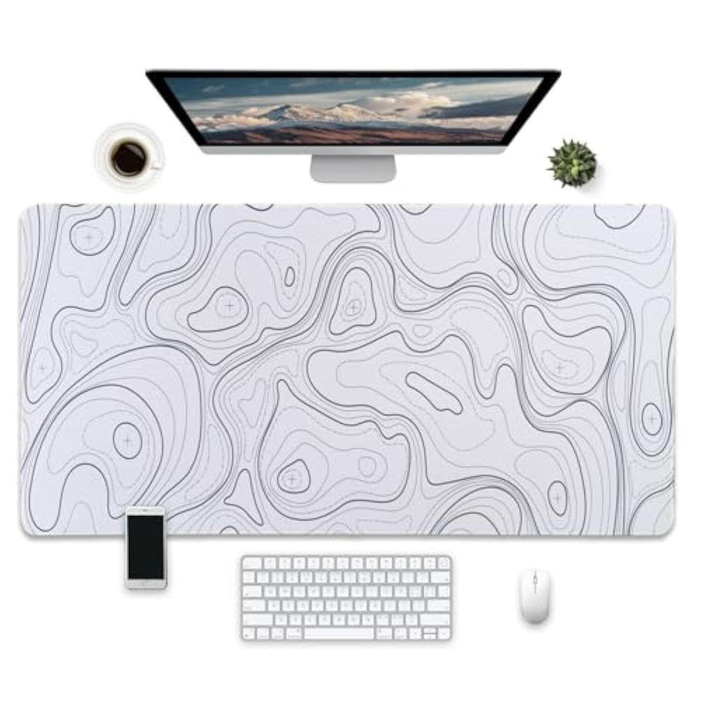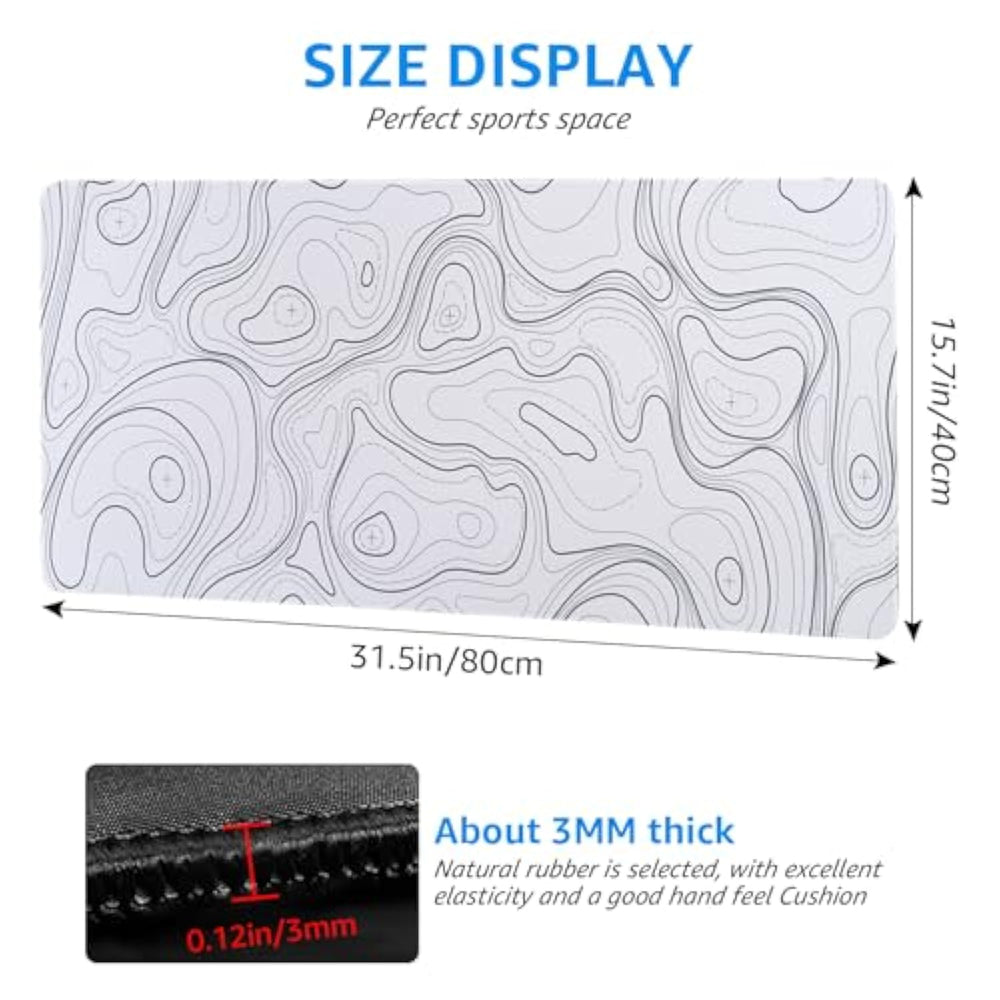 | Extra Large Size: Measures 31.5 X 15.7 Inches, Providing Generous Workspace For Your Keyboard, Mouse, And Other Desktop Accessories | | Modern Design: Sophisticated Topographic Pattern In Crisp Black And White Creates A Mesmerizing Visual Effect That Enhances Any Workspace Aesthetic | | Smooth Surface: Precision-Engineered Surface Ensures Accurate Mouse Tracking And Fluid Movements For Both Work And Gaming | | Waterproof Surface: Specially Designed Surface Repels Liquids And Makes Cleaning Effortless - Simply Wipe Away Coffee Spills And Other Accidents With Ease | | Non-Slip Base: Specially Engineered Bottom Surface Keeps The Mat Firmly Anchored To Your Desk During Intense Gaming Or Busy Work Sessions | |
