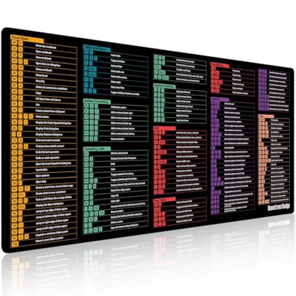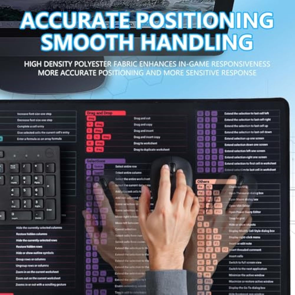 | Large Excel Cheat Sheet Desk Pad For Mac, 40"X16" Excel Mouse Pad For Mac, Non-Slip Desk Mat For Office Home Gaming | | ?Practical Excel Shortcut Key Integration?The Excel Shortcut Key Mouse Pad For Mac Includes Commonly Used Shortcut Keys In Excel Software, Suitable For Beginners, Helping You Quickly Query Key Functions And Improve Work Efficiency. | | ?High-Definition Thermal Transfer Printing? The Contents On The Rubber Mouse Pad For Mac Are Printed With High-Definition Thermal Transfer Technology, Bright And Clear, Which Is Not Easy To Fade, They Can Still Maintain Readability After Long-Term Use. | | ?Premium Rubber Non-Slip Bottom? The Bottom Of The Excel Shortcut Key Mouse Pad Is Made Of Non-Slip Rubber Material With A Thickness Of 3Mm To Make Mouse Pad Stable During Use. The Surface Is Made Of Soft Fabric To Better Protect The Mouse Pad. | | ?Professional And Interesting Gift Choice? This Excel Shortcut Key Mouse Pad Is Not Only A Practical Tool On The Desk, Enhancing The Fun Of The Working Environment, But Also Ideal Gifts For Office Software Users, Students Or Professionals. | |