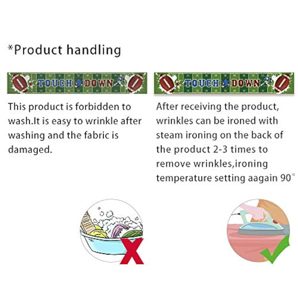 | What You Get: 1 Pack Green Football Field Banner With 1 Long Ribbon For Easily Hanging. This Football Party Banner Is Printed Green Football Field With Big Words Of ‘Touch Down’ | | Large Size: The Football Banner Measures 300 X 46 Cm/ 9.8 X 1.5 Feet, Large Enough For The Football Party Themed Decoration And For Photography At Your Party, It Added An Extra Touch To Party Theme | | Durable Material: The Football Banner Is Made Of Quality Polyester Fabric, Light Weight; It Can Be Folded And Easy To Carry | | Easy Assembly: There Are 4 Copper Holes Respectively Distributing In The 4 Corners Of The Football Banner, Coming With A 20Ft Rope; It'S Easy To Install The Banner Anywhere You Want; Convenient For Back To Parties Or Taking Photos | | Suitable Many Occasions: Perfect For Game Day Or A Football Theme Birthday Party. The Banner With Bright Color, You Can Directly Hang It On The Wall, Blackboard, Between Trees, Fence, Window, Or Other Special Occasions Excellent For Indoor Or Outdoor Decoration | |