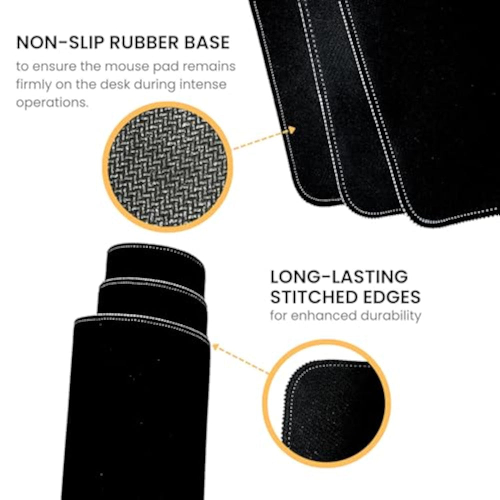 | Smooth Gliding: Slick-But-Not-Slippery Surface For Fast And Accurate Tracking; Designed For Gamers Who Need Both Speed And Control | | Non-Slip Rubber Base: Stable With A Non-Slip Rubber Base That Keeps It Firmly Rooted To Your Desk, No Matter How Hard You Moved Your Mouse | | Thick And Long-Lasting: 0.12 Inches Thick (3 Mm), Its Edges Are Also Stitched To Ensure It Lasts Longer And Minimizes Fraying | | Large Size: Measuring 31.5 X 11.8 Inches (800 X 300 Mm), Providing Ample Space For Your Gaming Keyboard, Mouse, Etc | | Washable And Easy To Clean: The Entire Pad Is Water-Resistant And Cleans Quickly And Easily, From Daily Dirt And Grime To The Occasional Spilled Drink | |