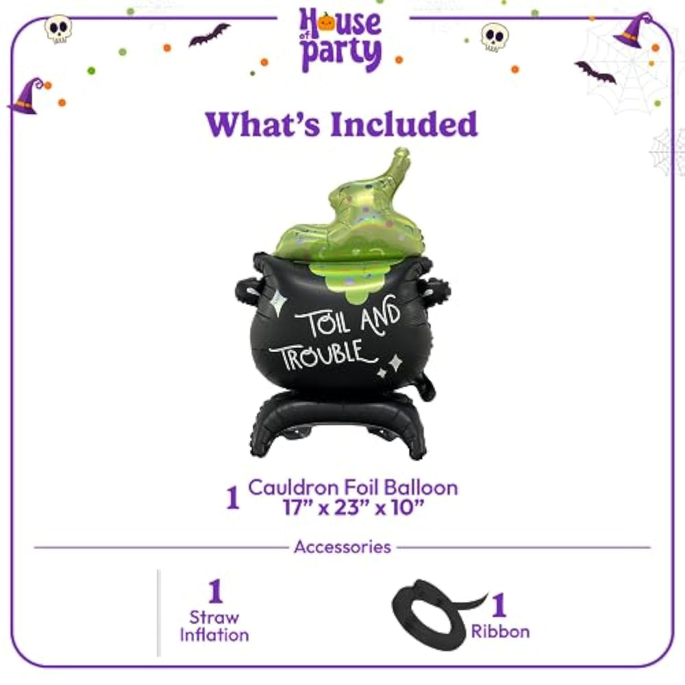 Elevate your Halloween celebration with our unique foil balloon set! Featuring a generously-sized 27"x19" “BUBBLE” cauldron foil balloon, this professionally designed piece adds a magical touch to any party. Crafted from premium-grade aluminum foil, the balloon is durable, safe, and self-sealing, making inflation with helium or air quick and worry-free. Perfect for hanging from ceilings, walls, or trees, or for creating eye-catching table centerpieces, this versatile balloon enhances birthdays, boo-themed gatherings, baby showers, and more. Bring charm, fun, and a touch of Halloween magic to your event with this one-of-a-kind foil balloon.