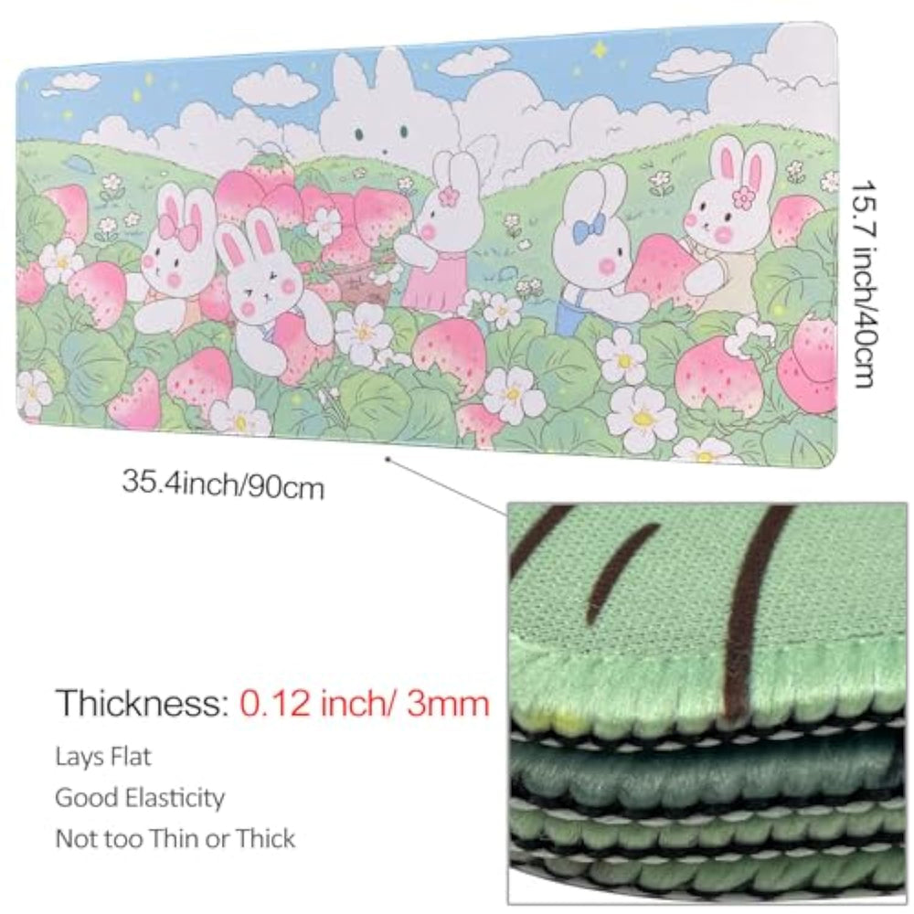 | Large Size: 35.4’’X15.7’’X0.12’’ (90Cmx40Cm, 3Mm Thick). | | Anti-Slip Rubber Base: Made Of Anti-Skid Natural Rubber Base Effectively Keep The Extended Mouse Pad From Sliding. | | Stitched Anti-Fray Edges: The Durable Stitched Frame Ensures It Doesn'T Fray Or Fall Apart, Provide A Long Service Time. | | Smooth Surface: High-Quality Cloth Surface Is Smooth, Lets Your Mouse Slide Smoothly And Precisely Along The Mouse Pad, And Also Can Prevent Mouse Pads Damaged From Spilled Drinks Or Other Accidents, Easy To Clean. | | Cute And Unique Design: The Printing Color Is Flexible, Bright, Solid And Strong; Provide Both A Great Looking And Protection On Your Desk. | |