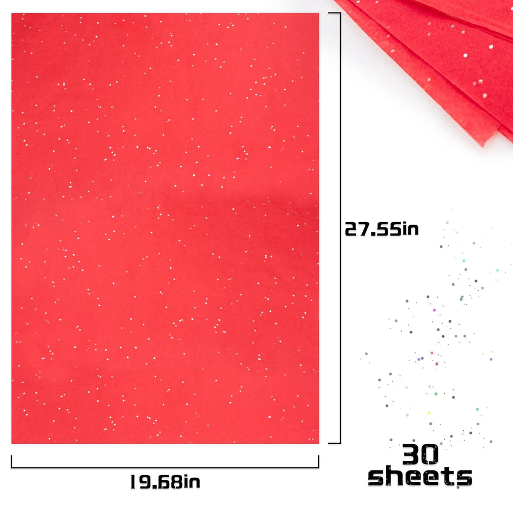 | You Will Get: 30 Sheets Red Tissue Paper With Glitter Bulk.Large Size:19.68 Inch X 27. 55Inch,Perfect For Regular Sized Gifts Wrapping And Gift Bags. Glitter Design:The Tissue Paper Has Red Background And Spark Glitter On It. It'S Very Beautiful.Perfect Glitter Tissue Paper For Gift Bags.Please Note That These Gift Tissue Paper Are Printed On One Side. High Quality:Tissue Wrapping Paper Is Made Of High Quality Paper,Not Easy To Tear. The Glitter Is Clear And Bright, Suitable For Wrapping All Kinds Of Gifts. Widely Use:You Can Use These Tissue Paper To Wrap Your Wedding, Thanksgiving,Baby Shower,Christmas And New Year Gifts.You Can Also Diy Them Into Paper Poms And Other Party Decorations. Recyclable Material:The Tissue Paper Is Made Of High Quality Paper, Environmentally Friendly And Recyclable.