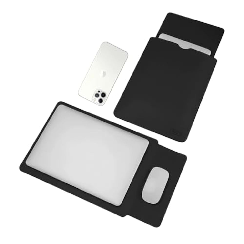 | Dual Function: Premium Laptop Sleeve Doubles As A Convenient Mousepad, Perfect For Mobile Work Setup And Protection | | Sleek Design: Slim Black Leather-Textured Material Provides Professional Appearance While Maintaining Functionality | | Versatile Storage: Dedicated Compartments Accommodate Laptops Up To 13 Inch And Essential Accessories | | Protective Features: Soft Interior Lining Safeguards Devices From Scratches And Minor Impacts During Transport | | Portable Workspace: Integrated Mousepad Surface Offers Smooth Tracking For Precise Cursor Control On Any Surface | |