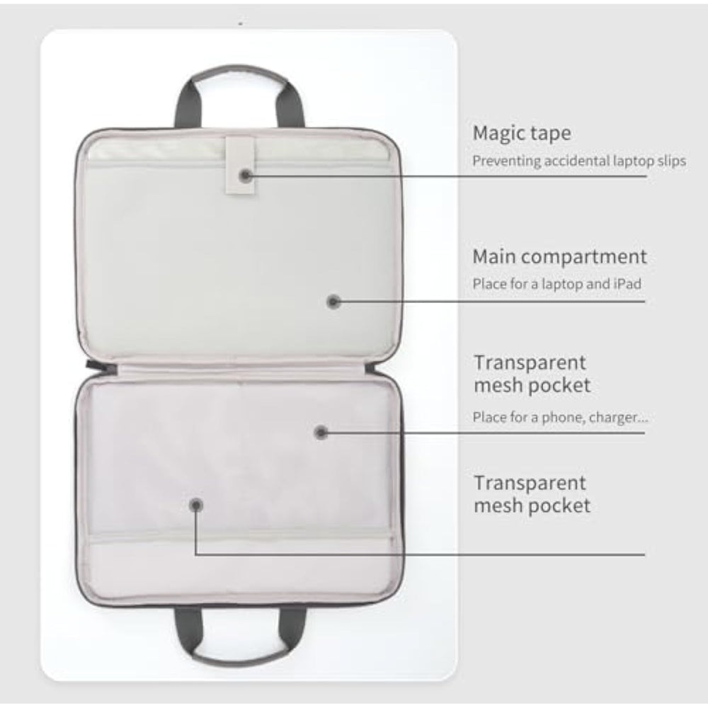 | Durable Construction: Crafted From Premium Leather, This Laptop Sleeve Offers Robust Protection And Water-Resistant Properties. | | Versatile Compatibility: Designed To Accommodate Laptops Up To 15.6 Inches, Ensuring A Snug And Secure Fit. | | Convenient Carry: Equipped With Sturdy Handles, This Sleeve Allows For Easy Transportation Of Your Laptop. | | Sleek And Stylish: The Minimalist Design With A Charcoal Gray Hue Lends A Professional And Sophisticated Aesthetic. | | Compact And Portable: Lightweight And Compact, This Sleeve Is Perfect For On-The-Go Professionals And Frequent Travelers. | |