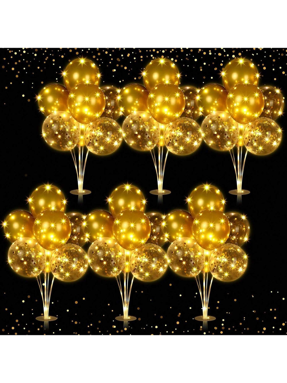 What You Will Receive: you will receive 6 pieces of reusable balloon stands for centerpieces, 30 pieces of gold confetti balloons, 30 pieces of latex balloons in , 6 pieces of string lights, and 2 rolls of adhesive dots (200 pieces) in the package, enough and complete in combination for you to make 6 sets of table balloon stand kits