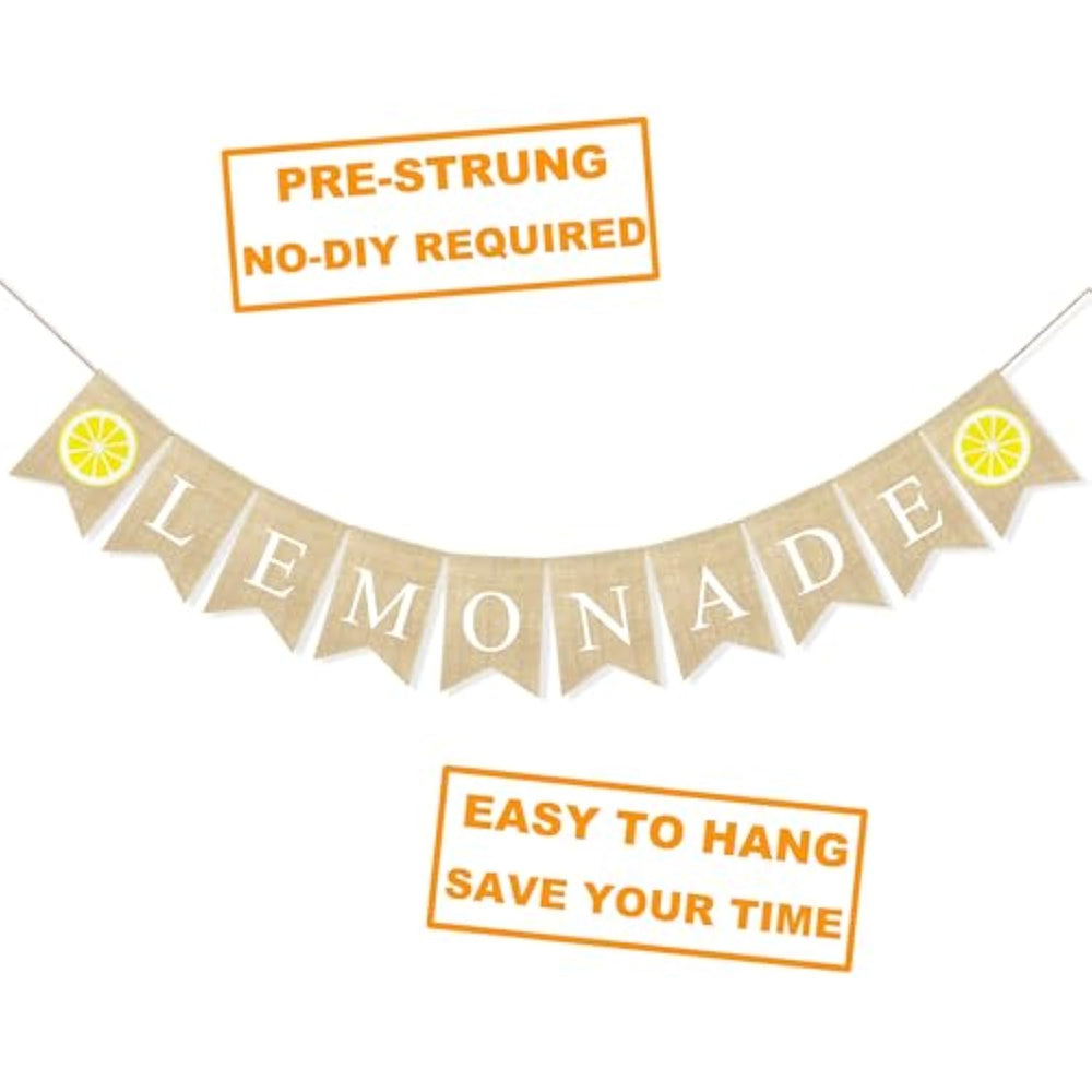 | Material--The Lemonade Burlap Banner Was Made Of Natural Burlap, Sturdy And Reusable. | | Size--Each Burlap Flag Measures (W * H): 5 * 7 Inch, The Lemon Banner Total Length: 8.2 Ft, Distance Between Each Flag Can Be Adjusted. | | Easy To Use--The Banner Has Been Assembled, No Diy Required, You Just Hang Them To The Perfect Place Where You Like, Also Folds Easily For Storage. | | Great Lemon Party Decorations--The Banner Is Definitely A Great Decor For A Lemonade Event, Lemon Themed Birthday Party, Lemonade Stand Decorations, Also Can Be Used As Photo Booth Backdrop. | | Apply To - You Can Decorate The Banner With Other Party Supplies, Such As Balloons, Pom Poms, Streamers, Tablecloth And So On, Making Your Party More Charming And Energetic. | |