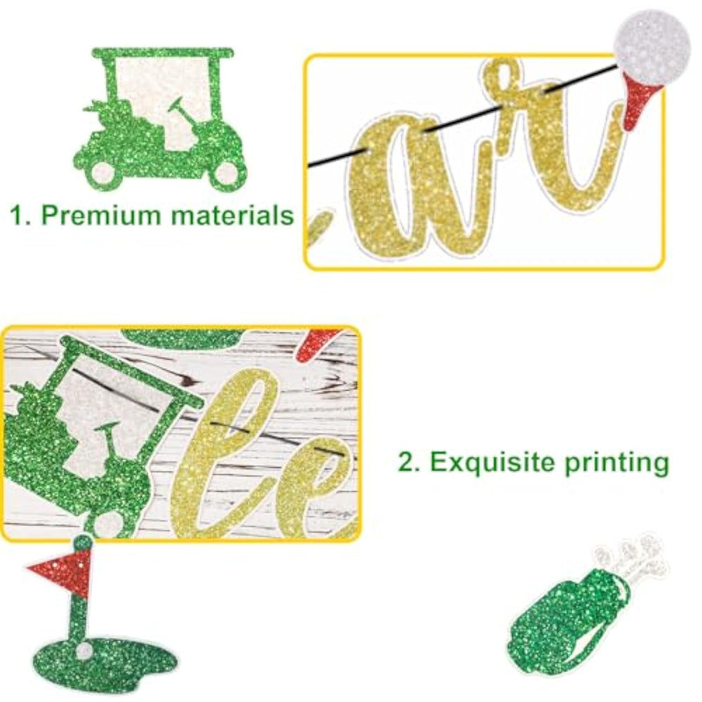 | Package Includes: You Will Receive 1 Let’S Par-Tee Banner In 2 Rows, Featuring Vibrant Glitter Accents, Perfect For Hanging At Your Golf Themed Birthday Or Retirement Party, Adding A Festive Touch To Your Celebration. | | Product Material: Our Golf Themed Banner Is Made From Premium Paper And Plastic, Both Lightweight For Easy Hanging And Durable Enough To Last Throughout Your Party, Ensuring Long Lasting Use For Future Celebrations. | | Product Size: Each Single Rope Of The Golf Party Banner Measures About 2.5M/8.2Ft, Offering Ample Length To Hang Across Walls, Doorways, Or Party Spaces, Creating The Perfect Focal Point For Your Golf Themed Celebration. | | Pre-Strung For Convenience: No Need For Extra Tools. The Golf Birthday Banner Comes Pre-Strung And Ready To Hang, Saving You Time And Effort While Ensuring A Hassle-Free Setup For Your Party. | | Versatile Golf Theme Decor: Featuring Classic Golf Elements And Sparkling Lettering, This Banner Works Beautifully For Various Venues, From Indoor Walls To Outdoor Party Spaces. It'S The Perfect Accent For Any Golf Lover'S Celebration. | |
