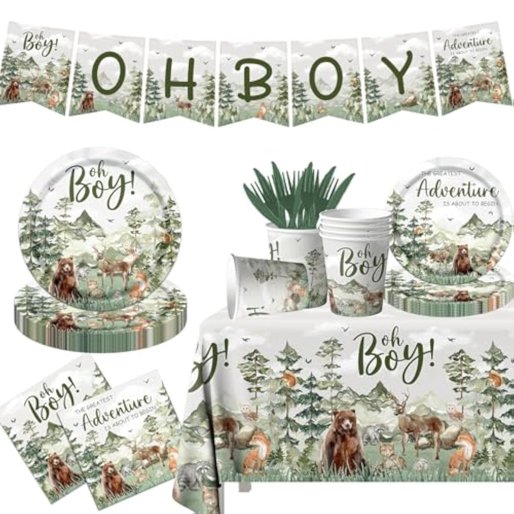 | ?What You Can Get?Are You Looking For Let The Adventure Begin Decorations For Baby Boy Look Here!The Adventure Awaits Party Decorations Include Oh Boy Banner,1Pc Waterproof Plastic Baby Shower Mountain Theme Tablecloth,20Pcs 9Inch Adventure Themed Baby Shower Plates,20Pcs 7Inch Adventure Party Dessert Plates,20Pcs 9Oz Cups,40Pcs Mountain Baby Shower Napkins. | | ?Premium Quality Materials?These Adventure Party Decorations Dinnerware Set For Baby Boy Is Made Of Superior Quality, Extra Durable Materials, Being 100% Safe And Non-Toxic For Kids And Adults! | | ?Apply To ?The Let The Adventure Begin Baby Shower Decorations Tableware Will Add Fantasy To The Party. It Can Be Applied Adventure Baby Shower Decorations For Boy,Forest Theme Baby Shower,The Adventure Begins Baby Shower,Little Adventure Baby Theme Party,Travel Theme Baby Shower Decorations,Woodland Animals Party And Baby Boy 1St Birthday Party | | ?Enjoy Your Party?Not Only Does The Mountain Baby Shower Decorations Tableware Set Add Fun And Sparkle To Your Party, But It Drasti