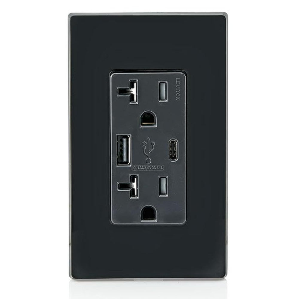 | SMART: Built-in smart chip recognizes the individual device’s charging requirements to optimize the charge (Does not provide Power Delivery. See Leviton T5835 and T5836) | | POWERFUL: Two high-powered charging ports deliver a combined total of 5.1A charging current and 25+ watts of power | | CONVENIENT: No more searching for charging adapters! Upgrade so you can charge electronics leaving the outlets free for additional power needs | | The Future of Charging: USB Type-C provides faster charging and is emerging as the standard port on many phones, and tablets, such as iPhones, iPads, Samsung Galaxy, Samsung Tabs, Google Pixel and More | | Enhanced Safety: Built-in overcurrent protection helps protect electronics from receiving too much power, which can damage the device | | Wallplate sold separately | |