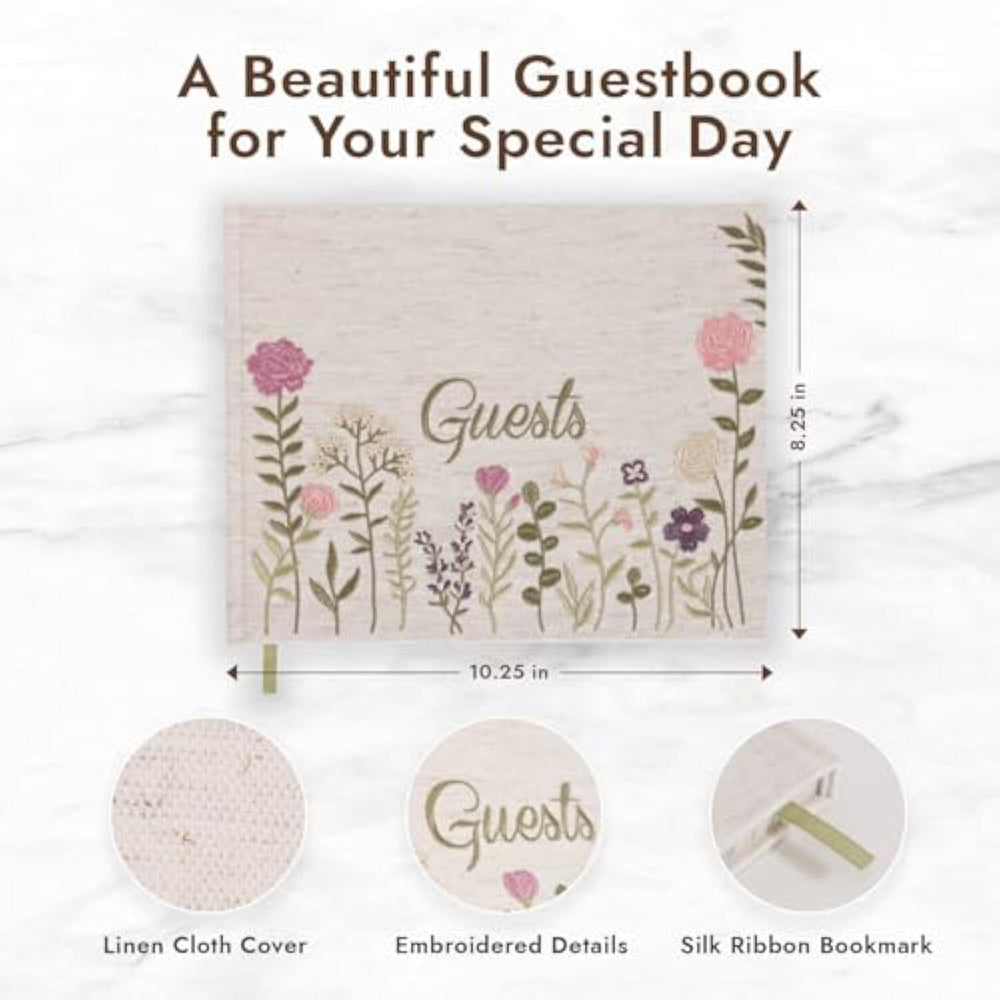 | Guest Book For Every Occasion- Celebrate Life’S Most Meaningful Moments With This Floral Embroidered Guest Book. Perfect For Use As A Wedding Guest Book, Baby Shower Guest Book, Birthday Guest Book, Or Even A Guest Book For Memorial Service, This Versatile Design Complements Any Wedding Guest Book Sign Decor And Event Theme. | | Polaroid Guest Book -Capture Beautiful Memories With Space For Notes, Signatures, And Polaroid Pictures. This Makes It An Ideal Wedding Guest Book Polaroid Pictures, Guestbook For Wedding Reception, Or Even A Guest Book For Vacation Home Where Guests Can Leave A Photo And Message. | | Premium Linen Hardcover- Hand-Stitched Floral Design-Crafted With Linen-Textured Fabric And A Detailed Embroidered Journal Cover, This Guest Book Adds A Touch Of Elegance To Your Event. Designed To Last, It Becomes A Treasured Heirloom—Whether Used As A Wedding Sign In Book Or Libro De Firmas Para Boda. | | 160 Decorative Pages- A Memory Book For Guests To Leave Their Love-Inside Pages Read “Our Guests” With Elegant Floral Borders—Making It Perfect For A Guest Book For Party, Wedding Books For Guests To Sign, Or A Touching Photo Guest Book For Funeral. Includes A Ribbon Bookmark. | | Perfect Size: 10.25 X8.25Inches Compact Yet Accommodating Design Makes It Ideal For Display At Reception Tables While Storing Memories For Years To Come | | Giftable- Thoughtful Engagement Gifts For Couples ,Brides, Moms-To-Be Hosts-Looking For A Unique Bridal Shower Guest Book Or Sweet 16 Guest Book. This Beautifully Designed Book Is A Heartfelt Gift For Hosts Planning A Quinceañera, Birthday Party, Or Special Wedding Planner Book Set. | | Perfect For All Of Life'S Moments –Use This Elegant Guest Book To Celebrate Love, New Beginnings, Or Honor A Loved One’S Memory. Ideal As A Funeral Guest Book, Memorial Service Sign In Book, Or Keepsake Tribute. | |