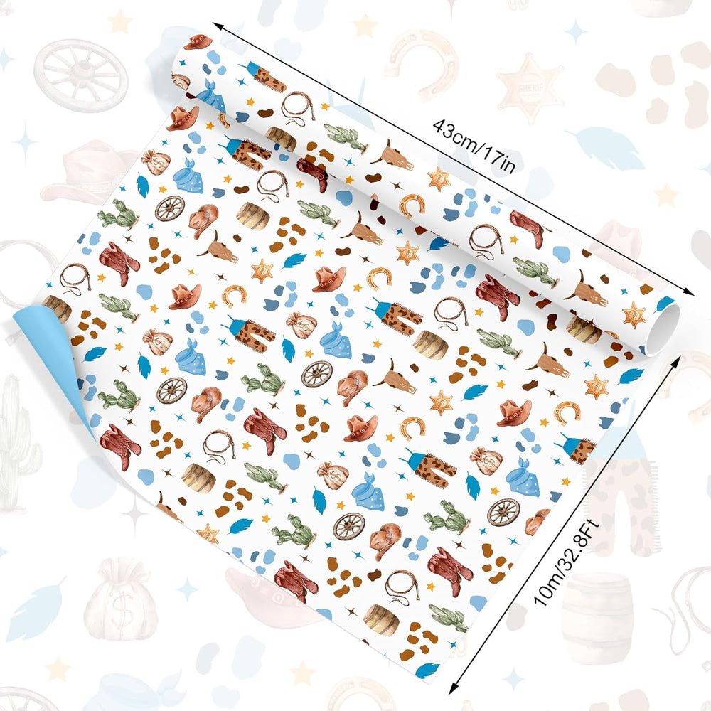 | The Package Includes: 1 Roll Wrapping Paper Is Contained In The Package, Perfect For Wrapping And Art Craft Making Little Cowboy Design: Our Wrapping Paper Features Playful Cowboy Hats, Boots, Clothes, Cacti, And Horseshoes In Charming Blue And Brown Tones, Adds A Fun And Rustic Touch To Your Crafts Reliable Material: Made Of Good Quality Paper, Hard To Tear Off, Easy To Fold And Easy To Cut, The Printings On The Paper Are Delicate And Clear Proper Size: The Wrapping Paper Measures About 17 In X 32.8 Ft, Large Enough For Wrapping, And You Can Cut Them Into Proper Size At Will, Very Convenient And Practical Wide Range Of Use: Ideal For Wildwest Parties, Rodeo Birthdays, Or Cowboy Baby Showers And Other Special Occasions. Also Great For Diy Craft Projects And Other Artistic Inspirations