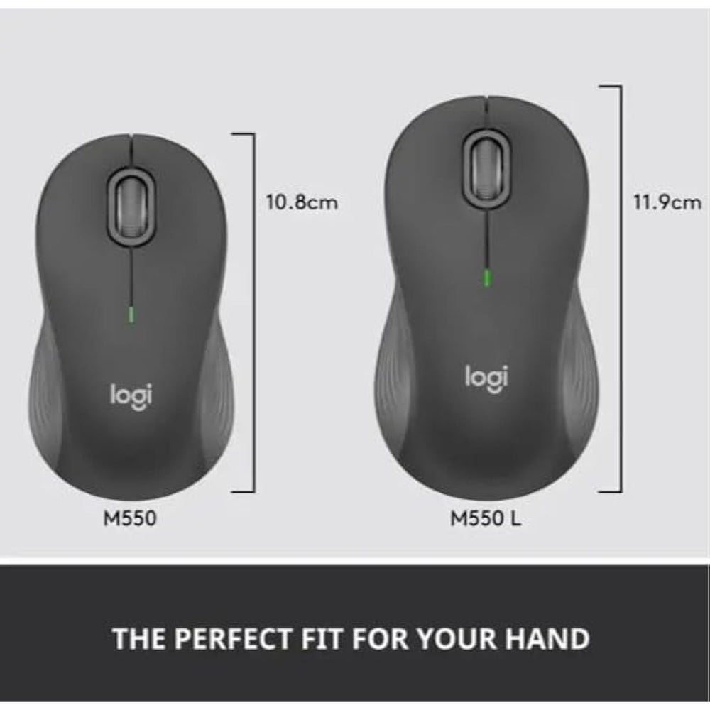 | Scroll Smarter With Logitech Signature M550 L Wireless Mouse You Get Line-By-Line Precision For Documents And Super-Fast Scrolling For Long Web Pages; Simply Switch Modes With A Flick Of The Smartwheel. | | The Optimal Fit For Your Hand This Comfortable Full Size Mouse Is Designed For Larger Hands, For The Optimal Fit. | | Upgrade Your Comfort This Work Mouse Provides Long Hours Of Comfort Thanks To A Contoured Shape, Soft Thumb Area, And Rubber Side Grips That Keep Your Hand Snug And In Place. | | Connect The Way You Like Connect This Cordless Computer Mouse In An Instant Via Bluetooth Low Energy Or Logi Bolt Usb Receiver. | | Less Noise, More Focus Whether Working At The Office Or At Home, Logitech Signature M550 L Is A Quiet Mouse, Allowing You To Enjoy 90 Percent Less Click Noise With Silenttouch Technology.¹ | | 24 Month Battery Life Work For Up To 2 Years On The Single Aa Battery That Comes With Your Multi-Device Mouse.³ | |