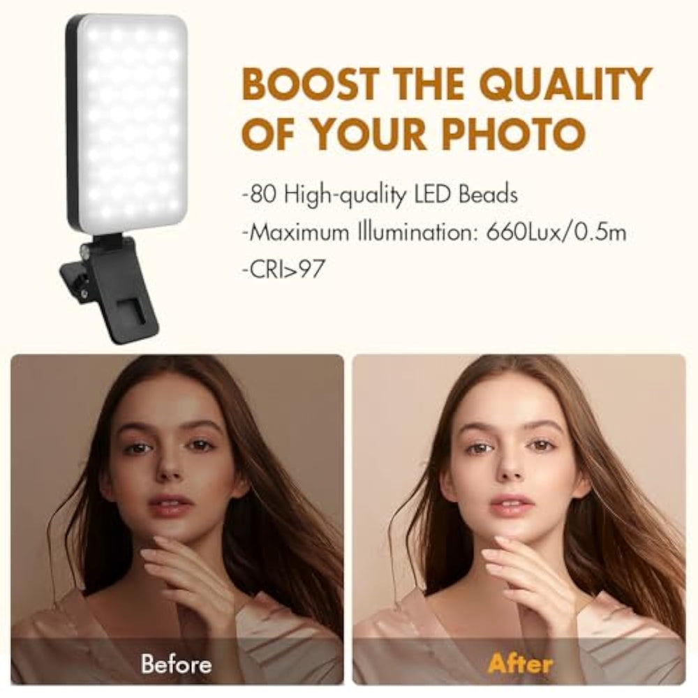 5 Light Modes And 5 Brightness: Elevate Your Lighting Game With Our Versatile Boasting 5 Adjustable Modes (3000K-6500K) And A High 90Ra Color Rendering Index. Perfect For Makeup, Stunning Selfies, Video Recording, Conferences, Shows, And Live Broadcasts. The Built-In 80 Led Shining Pearls Enhance Night Lighting, Offering Soft, Bright Illumination Without Any Eye Strain. | | 2000Mah Rechargeable Battery: Experience Uninterrupted Brilliance With Our Led Featuring A Powerful 2000Mah Ternary Rechargeable Battery. Its Usb Type-C Charging Interface Ensures Convenience, Allowing You To Charge It Anywhere Laptops, Pcs, Power Banks, Usb Chargers, Car Chargers, And More. Charge For Just 2 Hours And Enjoy 130 Minutes At 100% Brightness Or An Incredible 15 Hours At 10% Brightness. | | Wide Compatibility And Improved Picture Quality: Illuminate Your Best Self With Our Slim Led Phone Light That Enhances Your Appearance In Front Of Webcams. Ideal For Selfies, Photos, Vi.