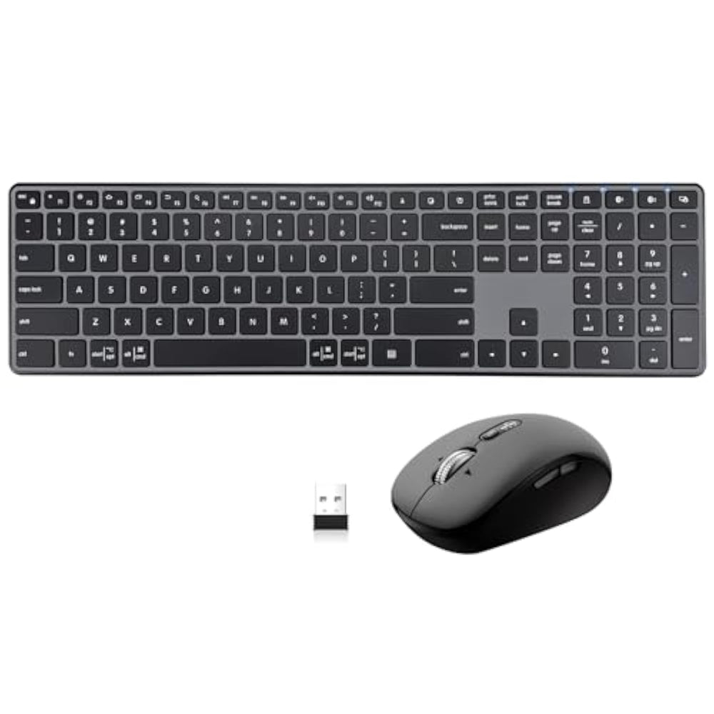 | Keyboard Mouse Bundle: Enjoy A Convenient Wireless Keyboard And Mouse Set With A Full Layout And Ultra Slim Design, Perfect For A Sleek Workspace.Experience The Quiet Wireless Keyboard And Mouse Combo With Low-Profile And Comfortable Experience. Warm Tips---You Can Place 1 Or 2Aa Batteries To Use (Depending On Your Preference Of Mouse Weight). | | Plug Play Simplicity: Our Wireless Keyboard Mouse Combo With Just One Usb Receiver For Both Devices, Offering Easy Installation By Simply Plugging Into Your Device Port For Instant Operation. Receiver Is Stored In The Mouse,Smart Flying Scroll Mouse: Besides The Backward And Forward Button,The Metal Scroll Wheel And 4-Way Navigation.This Computer Mouse Provides Whisper Silent Click, No Need To Worry About Disturbing Others | | Switch Between 3 Decives: M9250 Mouse And Keyboard Combo Feature 2 Additional Bluetooth Channels. The Built-In Device Switch Button Allows For Quick Switching Between Multiple Devices.Enjoy A Convenient Wireless Keyboard And Mouse Set With A Full Layout And Ultra Slim Design | | Sleek And Quiet Keyboard Mouse Set:The Wireless Keyboard Features Scissor-Switch Design, Conjure Some Focus Typing. You Can Also Scroll Through Documents Line By Line, Or Fly Effortlessly Through Long Web Pages With This Smart Metal Scroll Wheel Of This Wireless Mouse | | Intelligent Sleep For Saving Power: The Build-In Chips Will Detect Your Working Conditions Automati