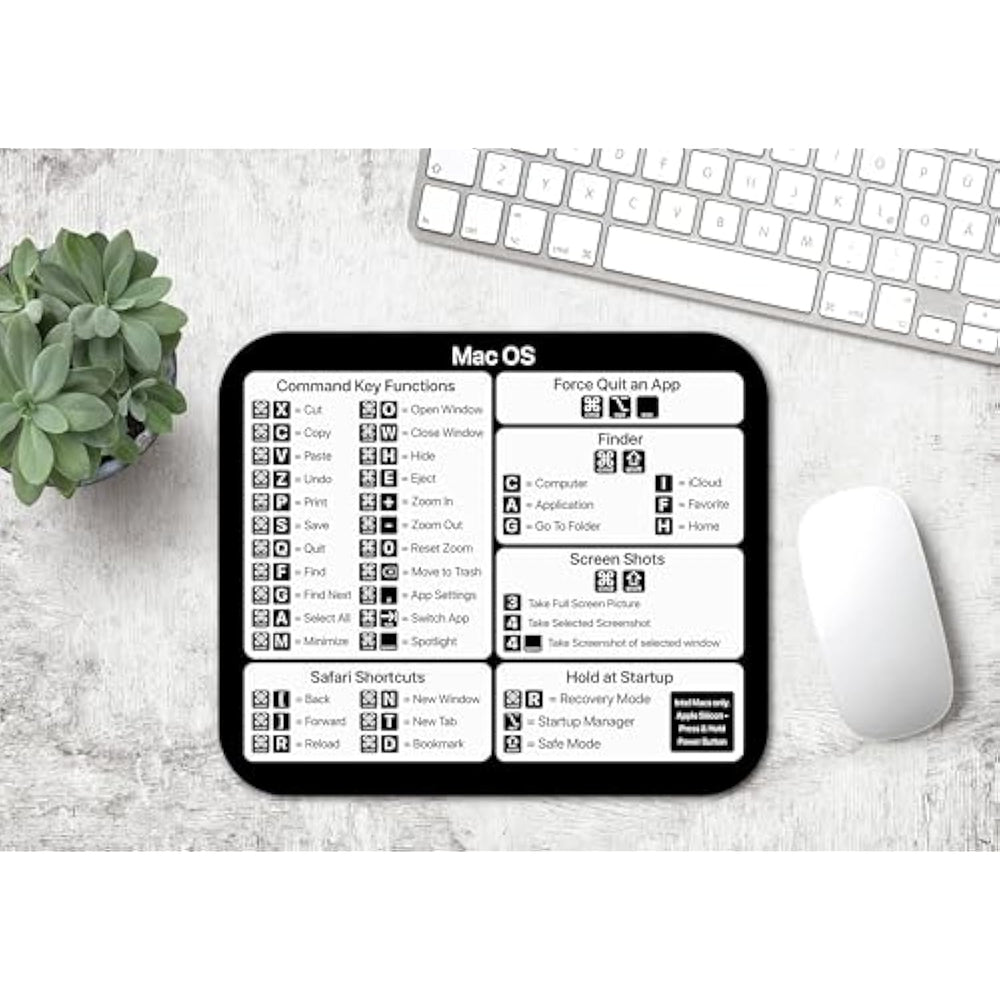 | Displays Essential Command Key Functions As Well Keyboard Shortcuts For Apps Like Safari And Finder. | | Learn How To Take Screenshots, Force Quit An Application, And Access Different Startup Modes. | | Durable, Smooth Surface Optimized For Mouse Control And Tracking | | Non-Slip Rubber Backing Prevents Sliding Around | |