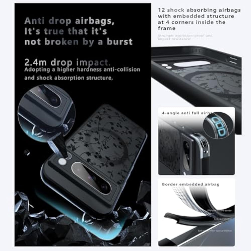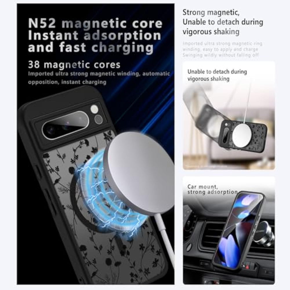 | Compatible With Magsafe Google Pixel 8 Pro Case With Black Flower Floral Pattern Design Case For Women Girls A9 | | Strong Magnetic Attraction:The Magnetic Phone Case Is Equipped With Perfectly Aligned Powerful Built-In Magnets. When It’S Time To Charge, Just Leave The Case On Your Phone And Snap On Your Magnetic Charger, Or Simply Set It Down On Your Qi-Certified Wireless Charger. It Securely Connects To Magnetic Accessories Like Wallets, Power Banks, And Car Mounts For A Stable Connection During Rotation Or Movement.Perfectly Aligned Magnets Make Wireless Charging Faster And Easier Than Ever. | | High Quality Craftsmanship Materials:Adopting Shock Resistant Upgraded Tpu Frame Material And High-Quality Matte Back Coating, It Creates Anti Slip, Anti Fingerprint, Watermark, Oil And Dust, Easy To Clean. The Cute, Clear, And Fashionable Flowers Floral Patterns Can Perfectly Blend The Original Appearance Of The Phone With The Fashionable Aesthetic Of Flowers, Highlighting Personality. These Patterns Use Unique And High-Quality Printing Technology, Which Will Not Be Erased, Faded, Or Yellowed. | | Precise Fiteasy To Carry: Tailored To Upgrade, Making Buttons, Speakers, And Charging Ports Easily Accessible With High Sensitivity. The Slim Design Provides Greater Portability, While The Silicone Frame Provides A Stronger Grip. Provide Full Body Protection For Mobile Phones While Ensuring No Additional Burden. | | The Best Gift: This Black Matte Strong Magnetic Flower Phone Case For Google Pixel 9 Pro Xl Is Perfect For Parties, Campuses, And Other Daily Or Holiday And Other Occasions. So, It Is The Best Gift To Give Myself Or Give To Others. | |