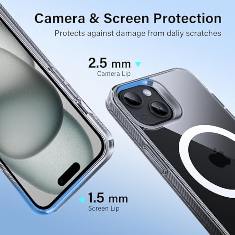| Strong Magnetic Power: Built-In Super Powerful N52 Magnets, With 2200-2600 G Of Holding Power, Which Ensures Lightning-Like Charging Speed, Compatible With Magsafe Accessories, Such As Magsafe Wallet, Power Bank, Car Phone Mount. The Strong Magnetic Attraction Makes Wireless Charging Faster And More Stable. | | Clear Pc Not Yellowing: Made With High-Grade Ultra-Clear Hard Pc And Soft Tpu Material. The Oil-Proof Pollution Coating Uses Antioxidant Components, Which Can Effectively Resist Yellow, Perfectly Display The Original Color And Logo Of Your Iphone. | | Non-Slip Shockproof: The Side Contours Of Our Phone Case Are Made Of Soft Tpu And Have The Design Of Anti-Sliding Bars In Appearance To Ensure That Your Grip Is Firm. The Thickened Edge And Back Of Case Are Full Of Security, Thickened Protection And 10 Ft Anti-Fall Protection. | | Accurate Incision Mag-Safe Ring: All Incisions Of The Iphone 15 Cases Are Precise Cutting, Buttons, Cameras, Charging Ports, And Magnetic Ring, Which Always Ensure The Symmetry Of The Hole Position. Precise Design, 1: 1 Perfectly Fit Your Mobile Phone And Provide You With A Comfortable Use Experience. | | Free Replacement: This Case Is Only Compatible With Iphone 15 (6.1 Inch 2 Cameras). Offers A And Free Replacement Service To Ensure Every