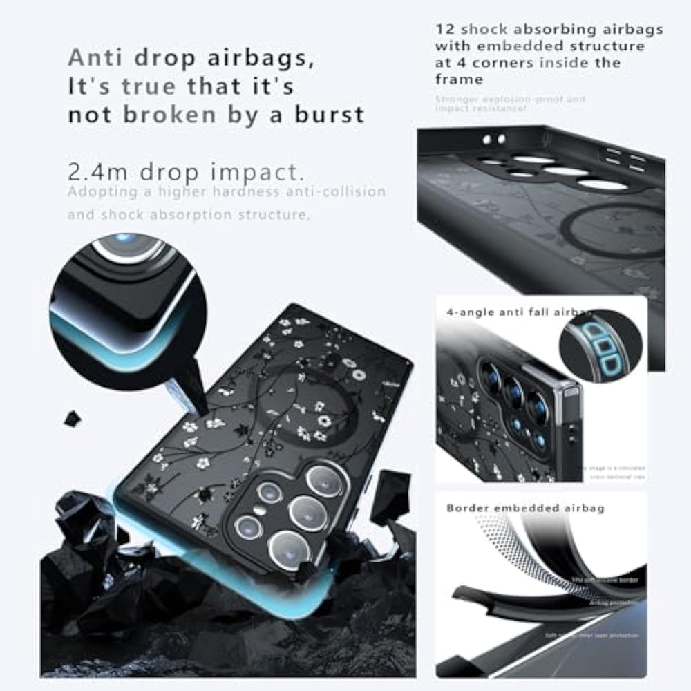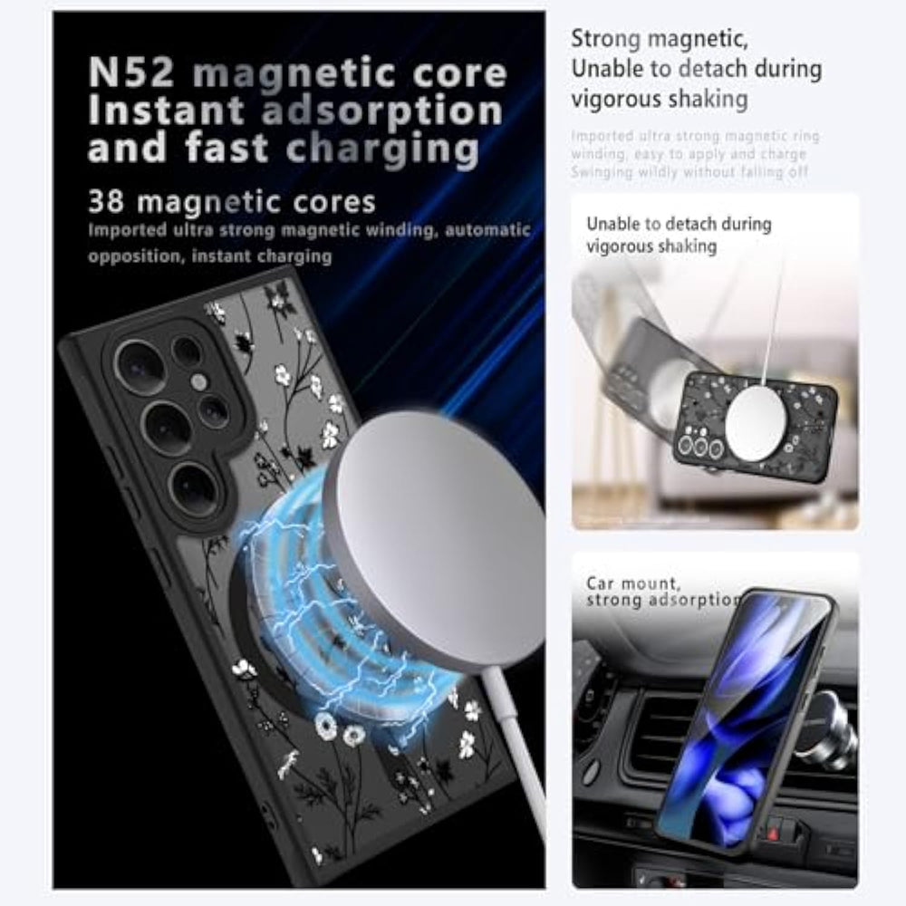 | Compatible With Magsafe Samsung Galaxy S24 Ultra Case With Cute Black Flower Floral Pattern Design Case For Women Girls Men Gift -A10 | | Strong Magnetic Attraction:The Magnetic Phone Case Is Equipped With Perfectly Aligned Powerful Built-In Magnets. When It’S Time To Charge, Just Leave The Case On Your Phone And Snap On Your Magnetic Charger, Or Simply Set It Down On Your Qi-Certified Wireless Charger. It Securely Connects To Magnetic Accessories Like Wallets, Power Banks, And Car Mounts For A Stable Connection During Rotation Or Movement.Perfectly Aligned Magnets Make Wireless Charging Faster And Easier Than Ever. | | High Quality Craftsmanship Materials:Adopting Shock Resistant Upgraded Tpu Frame Material And High-Quality Matte Back Coating, It Creates Anti Slip, Anti Fingerprint, Watermark, Oil And Dust, Easy To Clean. The Cute, Clear, And Fashionable Flowers Floral Patterns Can Perfectly Blend The Original Appearance Of The Phone With The Fashionable Aesthetic Of Flowers, Highlighting Personality. These Patterns Use Unique And High-Quality Printing Technology, Which Will Not Be Erased, Faded, Or Yellowed. | | Precise Fiteasy To Carry: Tailored To Upgrade, Making Buttons, Speakers, And Charging Ports Easily Accessible With High Sensitivity. The Slim Design Provides Greater Portability, While The Silicone Frame Provides A Stronger Grip. Provide Full Body Protection For Mobile Phones While Ensuring No Additional Burden. | | The Best Gift: This Black Matte Strong Magnetic Flower Phone Case For Google Pixel 9/9 Pro Is Perfect For Parties, Campuses, And Other Daily Or Holiday And Other Occasions. So, It Is The Best Gift To Give Myself Or Give To Others | |