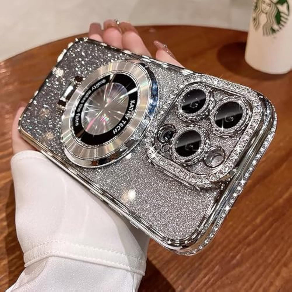 | Powerful Magnetic Attraction Compatibility - Designed For Iphone 16 Pro Max, This Magnetic Stand Case Is Fully Compatible With Magsafe Accessories. | | Flash Card And Diamond Design - Personalize Your Phone With Glittery Card Stock. Electroplating Technology Coats The Bumper And Camera Edges With Beautiful Diamonds And Rhinestone Details That Sparkle And Shine, Making Your Phone Stand Out. Ideal For Women And Girls To Showcase Their Unique Style. | | Adjustable Kickstand Lens Protection - The Built-In Foldable Magnetic Kickstand Provides A Hands-Free Viewing Experience, Perfect For Watching Movies, Video
