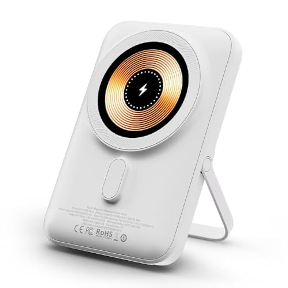 | ?Perfectly Designed For Iphone Android?Compatible With Iphone 15/14/13/12 Series, Magsafe Cases, And Qi-Enabled Android Devices. Includes Metal Ring For Wireless Charging Support On Devices Without Magnetic Functionality. | | ?Versatile Foldable Kickstand?This Portable Magnetic Charger Includes A Built-In Metal Foldable Stand, Allowing You To Wirelessly Charge Your Phone While Propping It Up For Convenient Viewing. | | ?Led Power Display?The Led Display On The Power Bank Provides Users With Precise Information, Displaying The Exact Percentage Of Remaining Power And Indicating The Current Status Of Charging, Ensuring You Stay Informed And In Control Of Your Charging Experience At All Times. | | ?15W Max Wireless Charging?The Magnetic Connection Offers Versatile Charging Options, Supporting Power Outputs Of 5W, 7.5W, 10W, And Up To 15W Max, Eliminating The Need For Cables. The Power Bank Automati