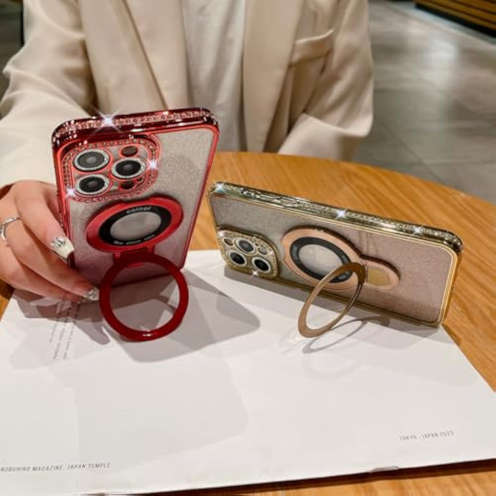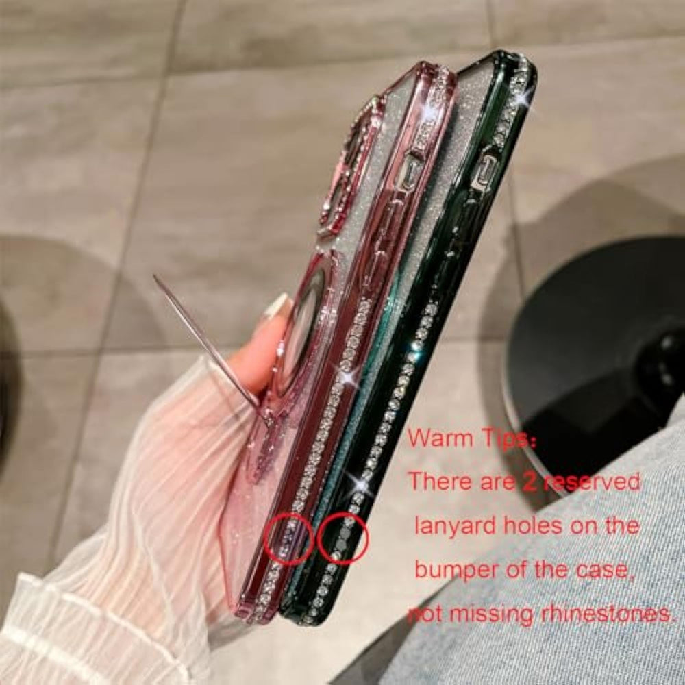 | ??Compatibility?This Case Is Exclusively Designed For The Iphone 15 Pro Max. Not Suitable For Other Iphone, Please Check Your Phone Model Before Purchg. | | ??Foldable Aluminium Alloy Magnetic Kickstand?Our Exclusive Aluminum Alloy Magnetic Ring,Featuring Powerful And Strong N52 Magnets,It Ensures A Secure And Stable Connection With The Wireless Charger.The Built-In Aluminum Magnetic Ring Can Stand Steadily In Portrait Or Landscape Mode When It Opens, And Is Totally Invisible On The Back (Not Like Other The Ring Stand Case Which Has Protruding Feeling And Discomfort) When It Folds. | | ??Built-In Glitter Camera Lens Protector? Iphone 15 Pro Max Case Has A Built-In Luxury Camera Lens Protection Cover, Which Can Effectively Protect Your Phone'S Camera Lens From Scratches And Impacts. The Lens Cover Is Made Of High-Quality Glass, Which Has Excellent Optical Clarity And Can Transmit Light More Clearly. | | ??Glitter Card Diamond Design?This Pattern Is Coming With A Bling Card To Personalize Your Iphone. The Plating Process Gives This Case A Shiny Metallic Luster That Will Never Fade Like Your Brilliant Life.Many Sparkly Rhinestones Decorate The Surroundings Of The Phone Case And The Camera. Ideal For Women And Everyone To Show Off Their Unique Style.??Note: There Are 2 Reserved Lanyard Holes On The Bumper Of The Case, Not Missing Rhinestones. | | ??Upgrade Shockproof Precise Cutouts?Upd Thicker Case With Enhanced Higher Raised Edge Strongly Protects The Protruding Camera And Phone Screen From Drops, Bumps, Scratch And Face Up Or Down. The Whole Case Fits Like Glove Adding No Bulky To Your Iphone. Easy Access To All Controls And Features With Accurate Cutouts For Buttons, Speakers, Camera And Other Ports, Easy To Use And Install Without Tools Needed. | |