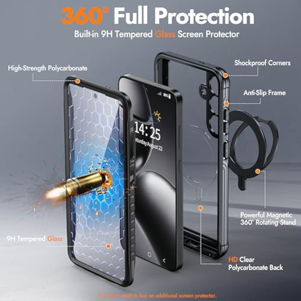 | ?9H Tempered Glass Protection? - Built-In 9H Tempered Glass Offers Exceptional Scratch Resistance And Durability, Ensuring Maximum Protection For Your Samsung Galaxy S25+ Screen Against Daily Wear And Tear. It Also Supports Seamless Fingerprint Unlock Functionality, Ensuring Quick And Secure Access. | | ?360° Rotatable Stand? - Featuring A 360° Rotatable Stand, This Case Provides Versatile Hands-Free Viewing Angles, Perfect For Watching Videos, Making Video