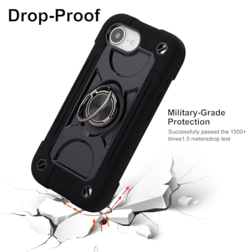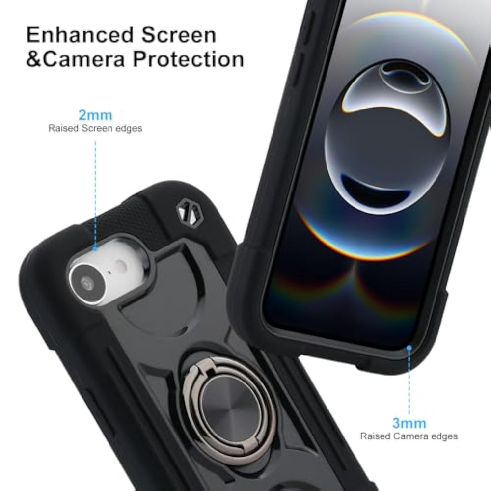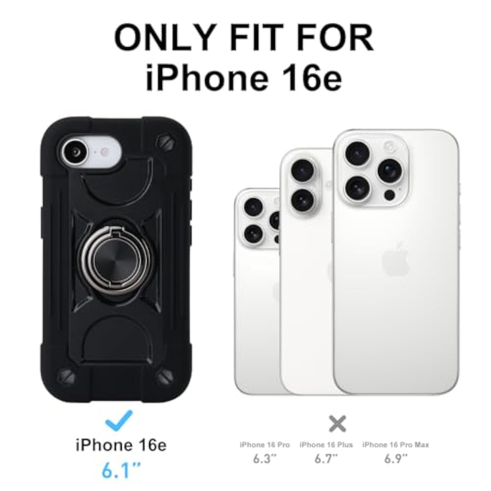 | ?Compatibility?This phone case is only suitable for iPhone 16e 6.1 inches(2025 Release).Exact cutouts for all ports and buttons. Easy to access all original function with full cover protection, charging without removing case. Please carefully confirm your phone model before you purchase the case.This Case No Screen Protector! | | ?High quality and Design? Combining high-quality hard PC inner shell and soft silicone shell, the design of four reinforced corners makes the phone case reach the military level of anti-drop. Easy access to all buttons, controls and ports. The unique design of the appearance | | ?Adjustable Ring?We use a double-layer 360° adjustable ring design, which can be used as a vertical and horizontal bracket. The foldable stand provides a variety of adjustable viewing angles. The stand function makes it more convenient for you to be