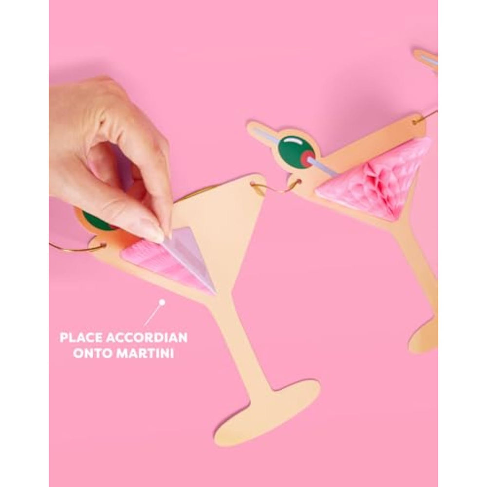 | Paper | | Shake It Up: Our Gold Foil Banner Includes 10 Martini Glasses And Is The Party Addition You'Ve Been Looking For + A Hit! | | Foil Details: Each Banner Features A Gold Foil Paper Finish With Green Olives And Adhesive Pink Tissue Accordions - Think Super Fun + Cute! | | For Every Event: One Size Fits All! Perfect For Any Birthday Party, Bachelorette, Cocktail Making Class Or Girls Night In! | | Ready To Party: This Banner Is Pre-Strung On One Gold String And Ready For Action! | | Size: Each Set Comes With One Banner With Martini Icons. Banner Spans 5 Feet With 6 Inches Of String Each Side! | |