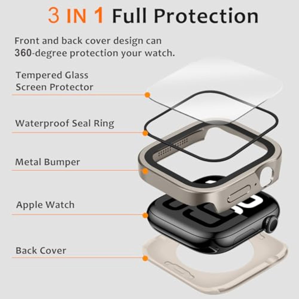 | ?Compatible Model? Metal Case Compatible With Apple Watch Series 11(2025)/Series 10 46Mm. Please Check Your Smartwatch Model Size Before Ordering. | | ?Overall Protection?Durable Metal Bumper With Built-In Screen Protector, Completely Covers The Watch Screen And Curved Edges, All Around Protect Your Watch Against Scratches And Damage. Ultra-Thin Three-Dimensional Right-Angle Edge Design Is More Slim. | | ?High Touch Sensitivity?99.9% Hd Clarity Glass, Provides An Original Vision And Touching Experience; Fingers Glide Across The Protector As Freely As Your Original Glass Screen. 2 In 1 Design Provides 360-Degree Rugged Protection. | | ?Easy To Install?Easy To Install For Its Snap-On Design. Charge Directly, No Need To Frequently Remove The Protective Case; Precise Cutting Ensures A Perfect Fit, Easy Access To All Controls, Buttons, Sensors And Apple Watch Features. | | ?What You Get?1X Titanium Apple Watch Case 46Mm; If You Have Any About Our Apple Watch Cases Defect Or Quality Issues, Please Feel Free To