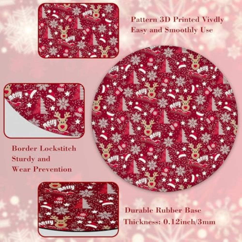 | Fashion Design: This Merry Xmas Round Mouse Pad Is Simple And Stylish, Whether It Is Work Or Game, It Can Perfectly Enhance Your Overall Beauty And Bring Good Visual Enjoyment | | Ultra-Smooth Surface: After 230°C High Pressure Treatment, The Texture Is Denser, The Mouse Can Be Moved Quickly And Accurately Positioned On The Smooth Surface, Very Suitable For Wireless Mice, A Perfect Gaming Mouse Pad | | Non-Slip Rubber Base: The Dense Rubber Base Firmly Grips The Desktop To Prevent Sliding. Suitable For Any Desktop, The Top Is Made Of Low-Friction Material For Precise Cursor Tracking, Perfect For Daily Work And Gaming Use | | Mouse Pad Size: This Merry Xmas Round Mouse Pad Measures 8 X 8 Inches. Compatible With All Types Of Mice | | High-Quality Material: This Merry Xmas Round Mouse Pad Is Made Of High-Quality Polyester Fabric, Which Is Soft, Sturdy And Not Easy To Damage. Reinforced Stitching Edges To Prevent Surface Peeling. Fabric Woven Design To Ensure Precise Tracking | |