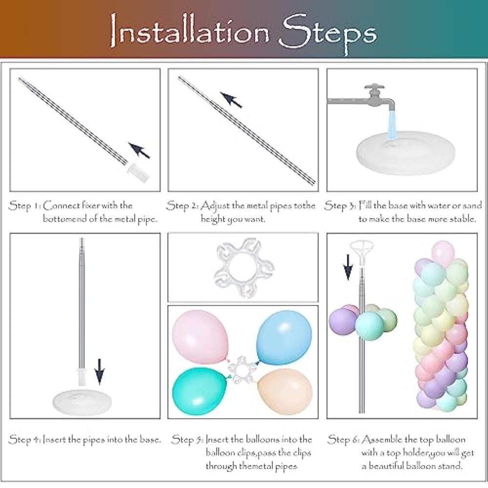 Create Stunning Decorations: Make Your Parties Unforgettable With This Balloon Stand Kit That Includes 2 Telescopic Metal Stick,2 Top Balloon Holder,30 Balloon Rings,2 Water/Sand Fillable Bases. (Balloons Not Included) | Quick And Easy Assembly: No More Struggling With Complicated Balloon Tower Stands. With This Kit, You Can Assemble Two Balloon Towers In Just A Few Minutes. | Customizable Height: The Telescopic Design Allows You To Adjust The Height Of The Balloon Column Stand From 20” To 80”, Making It Perfect For Any Occasion. | Durable And Stable: Made With High-Quality Pvc And Stainless Metal, This Balloon Stand Kit Is Sturdy And Won'T Break Easily. We'Ve Also Improved The Thickness Of The Telescopic Metal Stick To Make It More Durable And Less Likely To Deform. | Versatile Decoration: Perfect For Birthdays, Weddings, Graduations, Baby Showers, Gender Reveal Parties, Christmas, And More. Make Your Events Unique With This Balloon Stand Kit. |