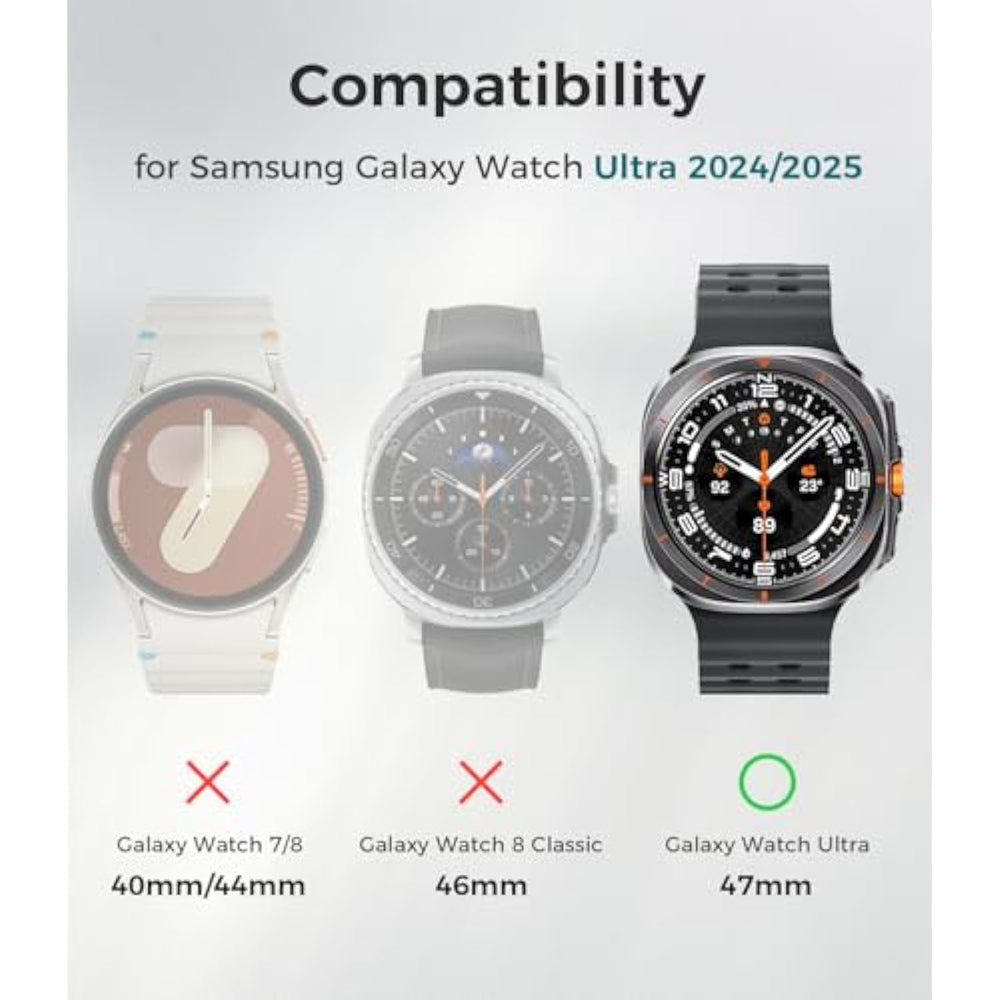 | Designed For Galaxy Watch Ultra 47Mm: This Case For Galaxy Watch 7 Ultra 47Mm (2024) And Galaxy Watch 8 Ultra 2 (2025) Is Precisely Crafted To Match Your Device. It Hugs The Watch Seamlessly—No Wobble, No Bulk. Please Check Your Model Before Purchase | | Exclusive Bezel Design In Metal: Unlike Generic Options, This For Galaxy Watch Ultra/Ultra 2 Case Features A Brand New Bezel Ring With Oil-Injected Numerals. Combined With An Stainless Steel Build, It Delivers Durability With A Premium, Custom-Crafted Appearance | | Full 360° Protection Structure: Built For Real-Life Protection, This For Galaxy Watch Ultra/Ultra 2 Case Includes A Front Metal Frame, A Backplate, And A Matching Screen Film. The Three-Layer Design Provides Protection Without Compromising Fit Or Function | | Auto-Align Screen Protector Included: Each For Galaxy Watch Ultra/Ultra 2 Case Comes With A High-Definition Screen Protector That Installs Effortlessly Thanks To Its Magnetic Alignment. Enjoy Bubble-Free Clarity And Full Touchscreen Sensitivity During Daily Use | | Everyday Convenience: This Case For Galaxy Watch Ultra/Ultra 2 Supports Wireless Charging, Offers Easy Button Access, And Includes A Tpu Lining To Prevent Scratches. Ideal For Daily Wear. And If You Ever Need Help, Our Support Team Is Just A Message Away | |