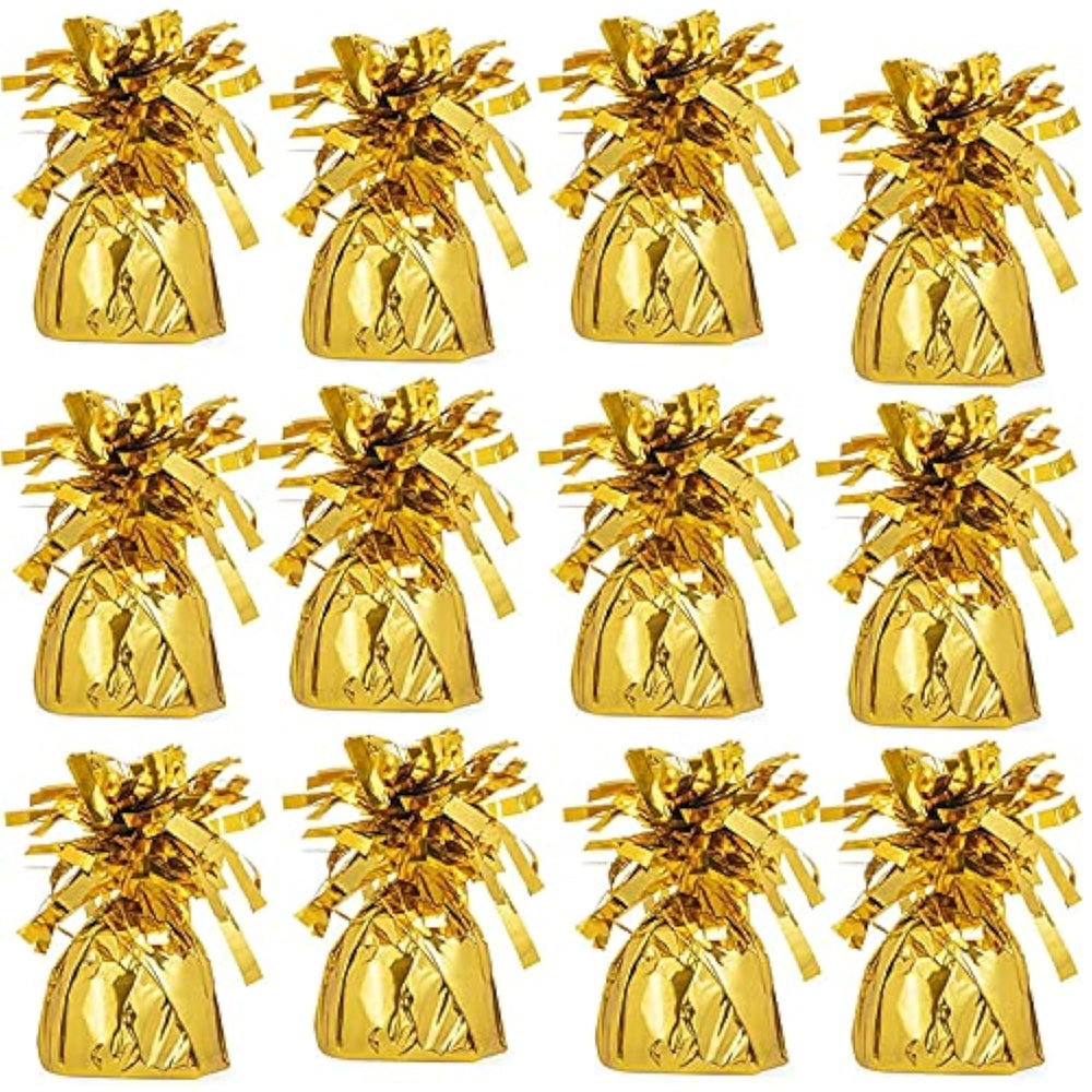 | Solid Foil Party Favor Ballon Weights, Each One Comes With A Classic Party Design. With Fun Ways To Decorate Party Thems And Holds Ballons In Place And Can Be Used For Eye Catchingtable Centerpieces | | Perfect For All Occasions Including Birthdays, Anniversary, Wedding, Party Supplies Decoration, Holidays, Halloween Trick And Treat Party, Thanksgiving, And Christmas, Sports Events, They Can Be Used At Gift Shops, Craft Shops, Jewelry Stores, Or Anywhere Where A Touch Of Color Will Help Your Product Stand Out. | | Our Balloon Weights Are Made Up Of Premium Quality Materials Proven And Tested For Its Durability And Functionality. | | Choose Between Our Gold And Silver 12-Pack | | 5.5" Inches | |