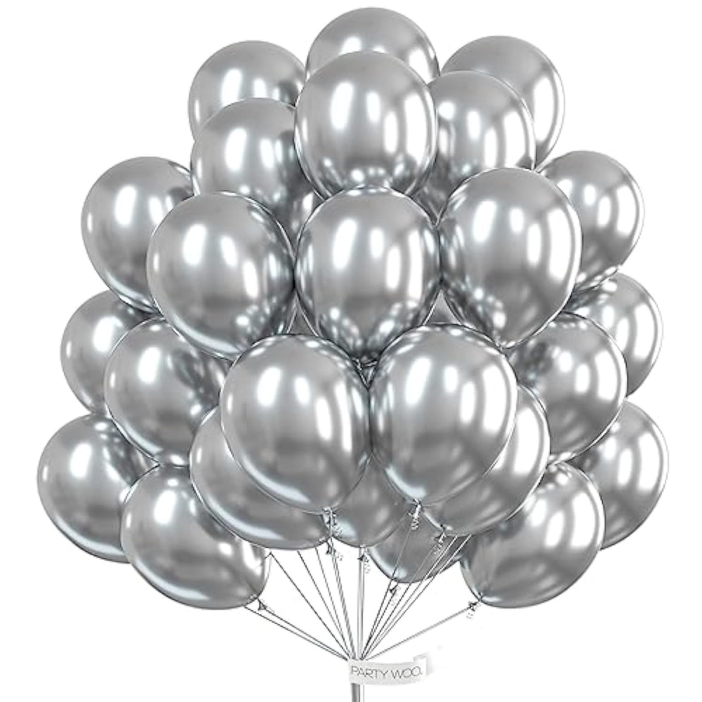 100 Pcs 12 Inch Metallic Silver Balloons: Package Includes 12 Inch Balloons (100 Pcs), Ideal Balloons For Birthday Decorations, Wedding Decorations, Baby Shower Decorations, Party Decorations | Non-Toxic Safe: Made Of Latex, Safe And Non-Toxic, Recommended To Use With A Balloon Hand Pump Or Electric Balloon Pump | What To Fill With: Latex Balloons Filled With Air Will Stay Full For Up To 72 Hours, While With Helium Will Stay Full For 3-6 Hours. For Best Float Results, Fill Helium 1-2 Hours Before Your Event | Multiple Applications: Ideal Balloons For Balloon Garland And Balloon Arch As Birthday Decorations, Party Decorations, Wedding Decorations, Baby Shower Decorations, Anniversary Decorations, Themed Party Decorations | Attention Warning: Please Do Not Overfill The Balloons And Also Avoid Sunburn, Overheat, Pointed Object And Excessive Friction. Control The Amount Of Air Inflated Into Each Balloon To Achieve Your Ideal Balloon Size |