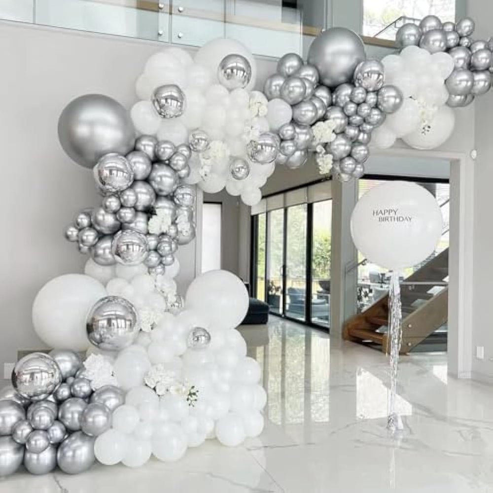 Package Include: The Package Include 50Pack 12 Inch Metallic Silver Balloons And A Roll Of 33 Feet Silver Ribbon | Great Quality: The Chrome Silver Balloons Are Made Of Premium Natural Latex. Each Balloon Undergoes Rigorous Testing And Selection, Can Be Offer Superior Elasticity And Durability, Being Thicker And Less Likely To Burst | Widely Occasions: The Metallic Silver Balloons Are Widely Used For Different Occasions Party, You Can Effortlessly Combining With Other Colored Balloons To Create Beautiful Balloon Arch Or Garland Kit To Match Your Party Theme. Such As, White And Silver, Gold And Silver, Silver And Black, Blue And Silver For Birthday Decorations, Graduation Decorations And Wedding Decorations | Warm Reminder: The Balloons Can Be Filled With Air Or Helium, It'S Recommend Using A Balloon Pump For Quick Inflation. To Maintain The Balloon'S Excellent Shape Shape For A Longer Time, Please Do Not Inflate It More Than 90% Of Its Volume And Avoid Friction With Pointed, Rough Surfaces Or Overheated Objects | Good Service: We Are Dedicated To Great Service, If You Have Any Issues, We Will Work Hard To Solve Them |