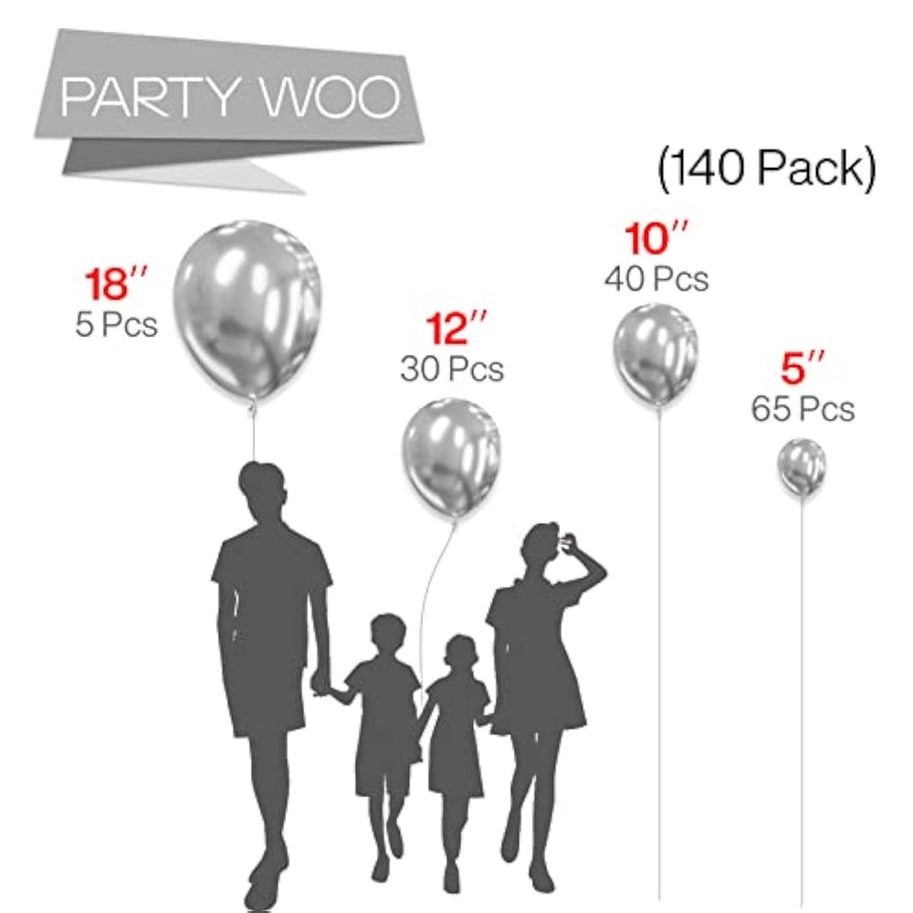 140 Pcs Metallic Silver Balloons Different Sizes: Package Includes 18 Inch Balloons (5 Pcs), 12 Inch Balloons (30 Pcs), 10 Inch Balloons (40 Pcs), 5 Inch Balloons (65 Pcs) | Non-Toxic Safe: Made Of Latex, Safe And Non-Toxic, Recommended To Use With A Balloon Hand Pump Or Electric Balloon Pump | What To Fill With: Latex Balloons Filled With Air Will Stay Full For Up To 72 Hours, While With Helium Will Stay Full For 3-6 Hours. For Best Float Results, Fill Helium 1-2 Hours Before Your Event | Multiple Applications: Ideal Balloons For Balloon Garland And Balloon Arch As Birthday Decorations, Party Decorations, Wedding Decorations, Baby Shower Decorations, Anniversary Decorations, Themed Party Decorations | Attention Warning: Please Do Not Overfill The Balloons And Also Avoid Sunburn, Overheat, Pointed Object And Excessive Friction. Control The Amount Of Air Inflated Into Each Balloon To Achieve Your Ideal Balloon Size |