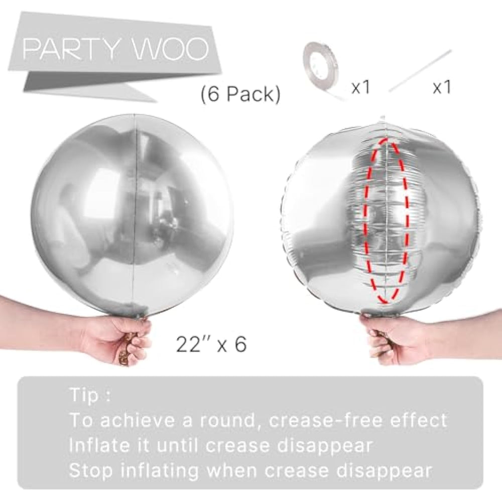 | Package Include: You Will Receive 22 Inch 4D Foil Balloons (6Pcs), Straw (1Pc), Balloon Ribbon (1 Roll). These Large Mylar Balloons Can Widely Used In Birthday Party, Graduation, Wedding Decorations, Adding A Vibrant Touch To Make Your Party Bright. | | Top Quality Foil And Mylar Balloons: Our Metallic Silver Foil Balloons, Including Mylar And Aluminum Foil Balloons, Boast High Quality With Bright Colors That Stay Vivid. They’Re Perfect For Graduation, Birthday Party, Engagement Party Decorations. | | Strong And Long-Lasting: Our Large Metallic Silver Foil Balloons And Large Mylar Balloons Are Very Durable, Holding Up Really Well Even With Frequent Handling. Ensuring Your Birthday Party, Graduation, Disco Party Stays Perfect From Setup To End. | | Simple To Use And Set Up: Inflating These Metallic Silver Aluminum Balloons, Orbz Balloons, Or Mirror Ball Balloons Is A Breeze—Inflate Great With Standard Pumps, And Deflation Is Just As Simple For Reuse. They Save Time On Birthday And Graduation Party. | | Perfect For Multiple Occasions: Whether It'S A Graduation Party, Birthday Party, Engagement Party, Disco Party, Space Themed Party, These 4D Foil Balloons, Mylar Balloons, And Aluminum Balloons Are Ideal And Making Your Event More Memorable And Lively. | |