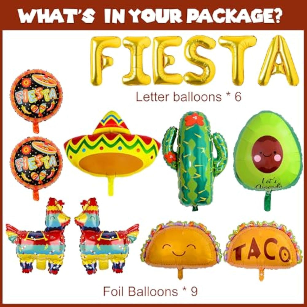 | Packgae Include: 1Set Fiesta Balloons, 1 Cactus Balloons, 2Pcs Bound Foil Balloons, 2Pcs Taco Balloons, 1Pcs Llama Foil Balloon, 1Pcs Avocado Balloon, 1Pcs Mexican Hat Balloon, 1Pcs Wine Glass Balloon You Could Diy Any Style You Like | | Occasion: The Balloon Arch Kit Is Perfect ?We Offer The Tools Which Can Help You To Make Balloon Arches More Easily. It Will Be A Funny Family Craft To Diy With Your Family. Just Enjoy It | | Party Versatility : Great For Mexican Party Decorations, Birthday Wall Decorations, Cinco De Mayo Decorations, Taco Party Decorations, Pool Party,Graduation Party Decorations And So Much More.Birthday Or A Get Together For The Girls On A Friday Night | | Mayo Fiesta Party Decorations : These Are Ideal When Clustered Together As A Backdrop,Hanging From A Wall,A Tree,A Curtain,Ceiling, Fireplace, Doorway,Or A Door. It'S Also A Good Idea To Add Color, Texture And Glamour To Your Bedroom Or Pavilion | | Easy To Assemble: After Receiving The Goods, No Complicated Skills And Tools Are Needed, You Just Need To Fill The Balloons With Air Or Helium And Inflate Them To 80-90%, Using Them Can Make Your Party More Ambient | |