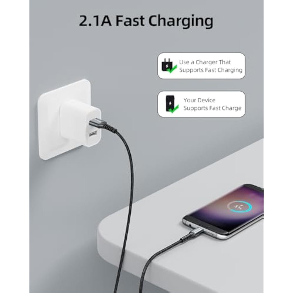 | [Micro Usb Cable] Usb A To Micro Usb Cable Fit For All The Micro Connector Phone And Micro Devices Charging And Sync With 480 Mbps Data Transfer. | | [Fast Charging] Support 2.4A Big Current Fast Charging, Support Qc3.0 2.0 Quick Charge Protocol Current Charging And Usb 2.0 (480 Mbps)Data Transmission. | | [Durable Nylon] This Cable Using Nylon Braided Cable And Aluminum Cg Makes Lifespan Longer Than The Normal Cables. | | [Universal Compatibility] Fit For All The Standard Micro Connector Phone Tablet Or Device Charging And Sync; No Fit For Special Long Micro Connector Devices | | [Package Included] 2Pack 3Ft Micro Usb Cable. Suitable For Most Environments Such As Home, Office, School, Etc. | |