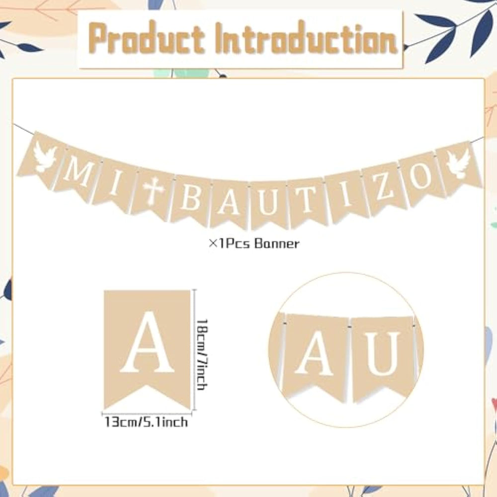 | Mi Bautizo Decorations: You Will Receive 1 Piece Of "Mi Bautizo" Themed Banner, Perfect For First Communion Decorations. | | Baptism Banner: Perfect For Baptism Decorations, First Communions, Baby Showers, Etc., The "Mi Bautizo" Banner Highlights The Party Theme And Creates The Sacred Atmosphere Of Baptism. | | Pre-Assembled: The Banner Is Already Pre-Assembled, No Need For You To Spend Time Assembling It, The Banner Is Made Of Paper Material And Can Be Hung For A Long Time. | | Convenient: Use "Mi Bautizo" Theme Decoration To Add Atmosphere To Your Child'S Baptism, You Can Decorate Ceilings, Walls, Porches, Fireplaces, Dessert Tables, Etc., Easily Create Exquisite Baptism. | | Excellent Service: If You Have Any Questions About The Product, Please