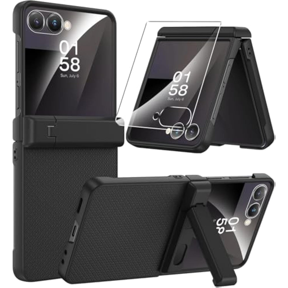| ?Compatible with Wireless Charging?The Samsung Galaxy ZFlip 7 cases is specially designed for Samsung Galaxy Z Flip 7 5G, ensuring a perfect fit to every corner of the phone. The Samsung Flip7 military grade case supports wireless charging function, allowing you to enjoy fast and stable wireless charging without removing the case. (Note: No magnets in the phone case) | | ?Hinge Protection Hidden Kickstand?The Galaxy Z Flip 7 case hinge protection is equipped with a built-in spring and hidden bracket, providing comprehensive protection for the hinge connection, ensuring its stability and safety. The foldable stand of the Samsung Z Flip 7 cover shockproof is hidden in the hinge protection area, allowing your phone to maintain the best viewing angle, whether it's watching videos, daily office work, or video chatting, freeing up your hands. | | ?Built-in Screen Protector Military Grade Protection?The Galaxy Flip 7 case with screen protector comes with a high-definition 9H tempered glass to prevent scratch and crash on the screen. The matte PC and soft TPU material have excellent shock resistance and can absorb the impact of drop, providing 360° comprehensive protection. The Samsung zflip7 case stand has been raised by 0.5mm at the edge of the lens to avoid the lens being scratched and affecting the clarity of the photos. | | ?Skin Friendly Comfortable Grip?The Samsung Flip 7 phone case rugged features a matte square anti slip texture, providing a unique grip and anti-slip, ensuring that the phone is not easy to slip off, while also preventing fingerprints, scratches, and oil residue, keeping your phone in a best condition at all times. The Z7 Flip case heavy duty is made of skin friendly material, providing a soft and delicate touch that can still provide a comfortable grip even after long-term use. | | ?Slim Fit Precise Cutouts?Our Samsung Flip 7 thin case features a slim design aimed at providing ultimate portability and comfort. The case is that almost no adds volume or weight, allowing your phone to easily fit into pockets and small bags, saving space and being easy to carry. Each opening of the Galaxy Z Flip 7 full body cover case is precisely measured to ensure a perfect fit with the phone, preventing dust and small particles from penetrating and scratching the phone inside. | |